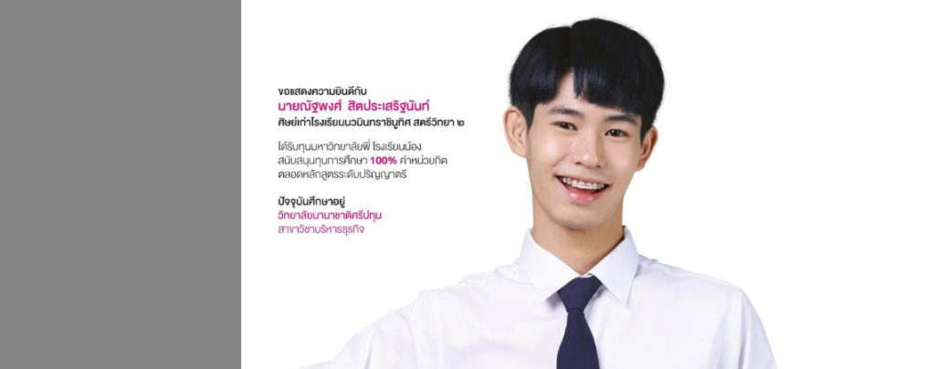 (สนับสนุนทุนการศึกษา 100% ค่าหน่วยกิตตลอดหลักสูตรระดับปริญญาตรี)