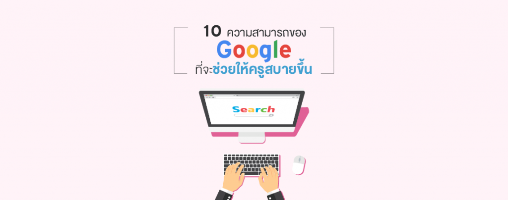 สมัยนี้โลกเทคโนโลยีเข้ามามีบทบาทกับเรามากขึ้นจนบางครั้งเราไม่สามารถตามทันกระแสโลก ซึ่งมีหลายๆครั้งเราอาจยังใช้งานสิ่งที่มีอยู่อย่างไม่เต็มประสิทธิภาพใครจะรู้ว่าความจริงแล้ว Google ที่เราใช้กันเป็นประจำทุกวัน ยังซ่อนความสามารถอื่นๆไว้ด้วย เพื่ออำนวยความสะดวกต่อเราเป็นอย่างมากรับรองได้ว่าถ้าครูได้รู้เคล็ดลับที่ซ้อนอยู่ของมันแล้วมันจะช่วยให้ชีวิตง่ายขึ้นอีกเยอะเลยค่ะ