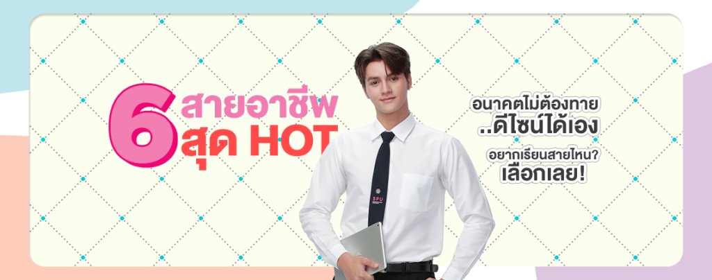 ถ้ายังลังเลว่าจะเรียนสายไหนดี บทความนี้จะช่วยให้น้องๆ เห็นภาพชัดขึ้น เพราะเรารวม 6 สายอาชีพสุดฮอต ที่อนาคตไปได้ไกล พร้อม 13 คณะให้เลือกตามสไตล์ของตัวเอง ไม่ว่าชอบสายเทค สายครีเอทีฟ สายธุรกิจ สายบริการ สายกฎหมาย หรือแม่แต่สายอินเตอร์ ที่ SPU มีครบ! อนาคตไม่ต้องเดา เพราะน้องดีไซน์เองได้ตั้งแต่วันนี้…