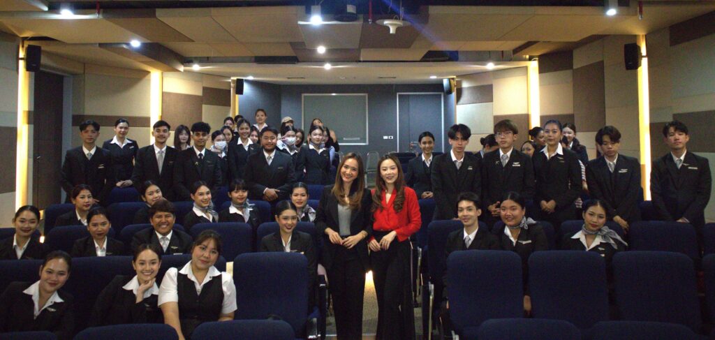 A: บัณฑิตสามารถทำงานได้หลากหลายสายอาชีพทั้งในและต่างประเทศ ขึ้นอยู่กับสาขาที่เรียน เช่น ธุรกิจการบิน (พนักงานต้อนรับ, เจ้าหน้าที่ภาคพื้น), การจัดการโรงแรม (ผู้จัดการ, ฝ่ายขายและการตลาด), ธุรกิจระหว่างประเทศ, และผู้เชี่ยวชาญด้านสื่อดิจิทัลในองค์กรชั้นนำ