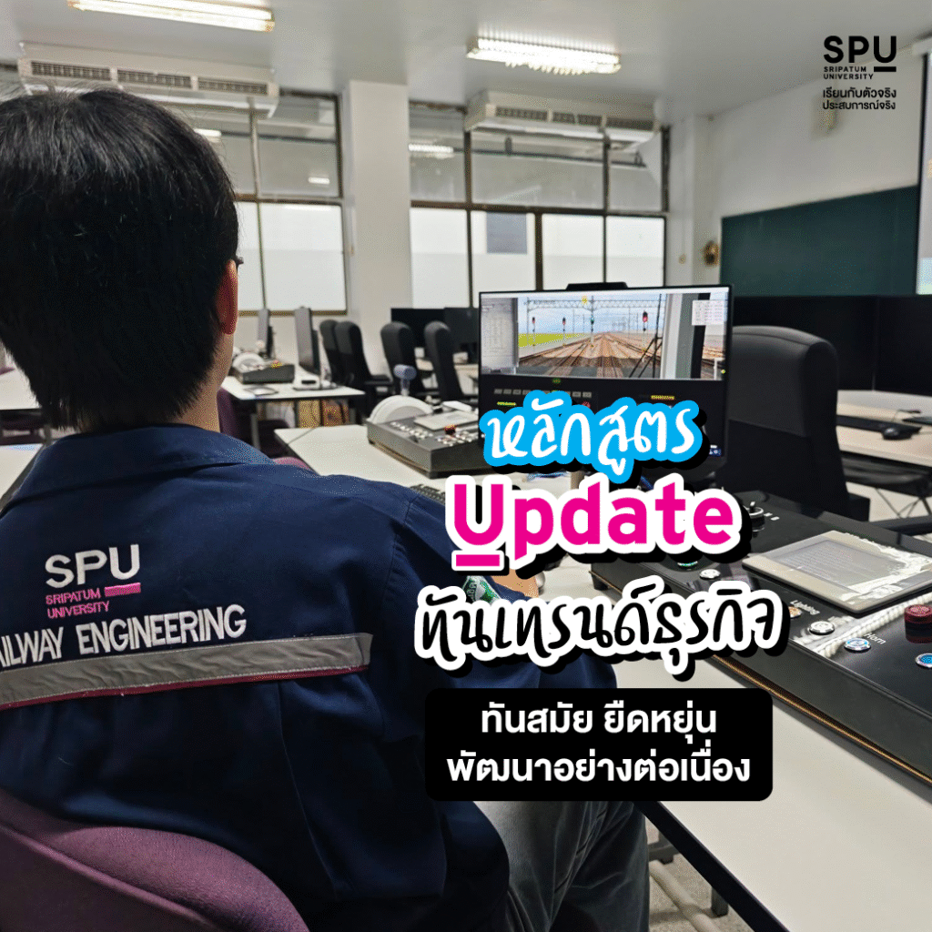โลกธุรกิจหมุนไปข้างหน้าอย่างไม่หยุดนิ่ง SPU จึงไม่เคยหยุดพัฒนาหลักสูตรของเรา ที่นี่ คุณจะได้เรียนรู้จากองค์ความรู้ที่ “Update” ที่สุด, ทันสมัย, และยืดหยุ่น พร้อมรับทุกการเปลี่ยนแปลง เราถอดรหัสเทรนด์ธุรกิจที่เกิดขึ้นจริงในปัจจุบัน มาบรรจุไว้ในห้องเรียน เพื่อสร้างบัณฑิตที่พร้อมตอบโจทย์โลกอนาคตได้ทันที นี่คือการศึกษาที่ไม่เคยตกยุค