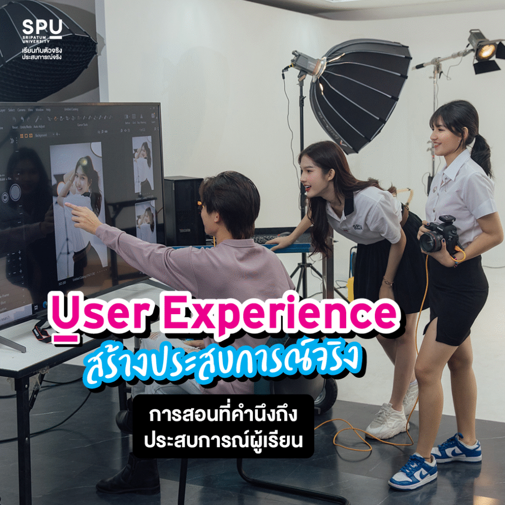การเรียนรู้ที่ดีที่สุดคือการได้ลงมือทำจริง SPU จึงให้ความสำคัญกับ “User Experience” หรือประสบการณ์ของผู้เรียนเป็นหัวใจสำคัญ เราเปลี่ยนห้องเรียนทฤษฎีให้กลายเป็นการเวิร์กช็อปและการฝึกปฏิบัติจริงที่เข้มข้น คุณจะได้เรียนรู้จาก Case Study จริง และเผชิญโจทย์จริงจากภาคธุรกิจ เพื่อสร้าง “ประสบการณ์จริง” ที่มีค่ามากกว่าแค่ความรู้ในตำรา และพร้อมทำงานได้ทันทีหลังเรียนจบ