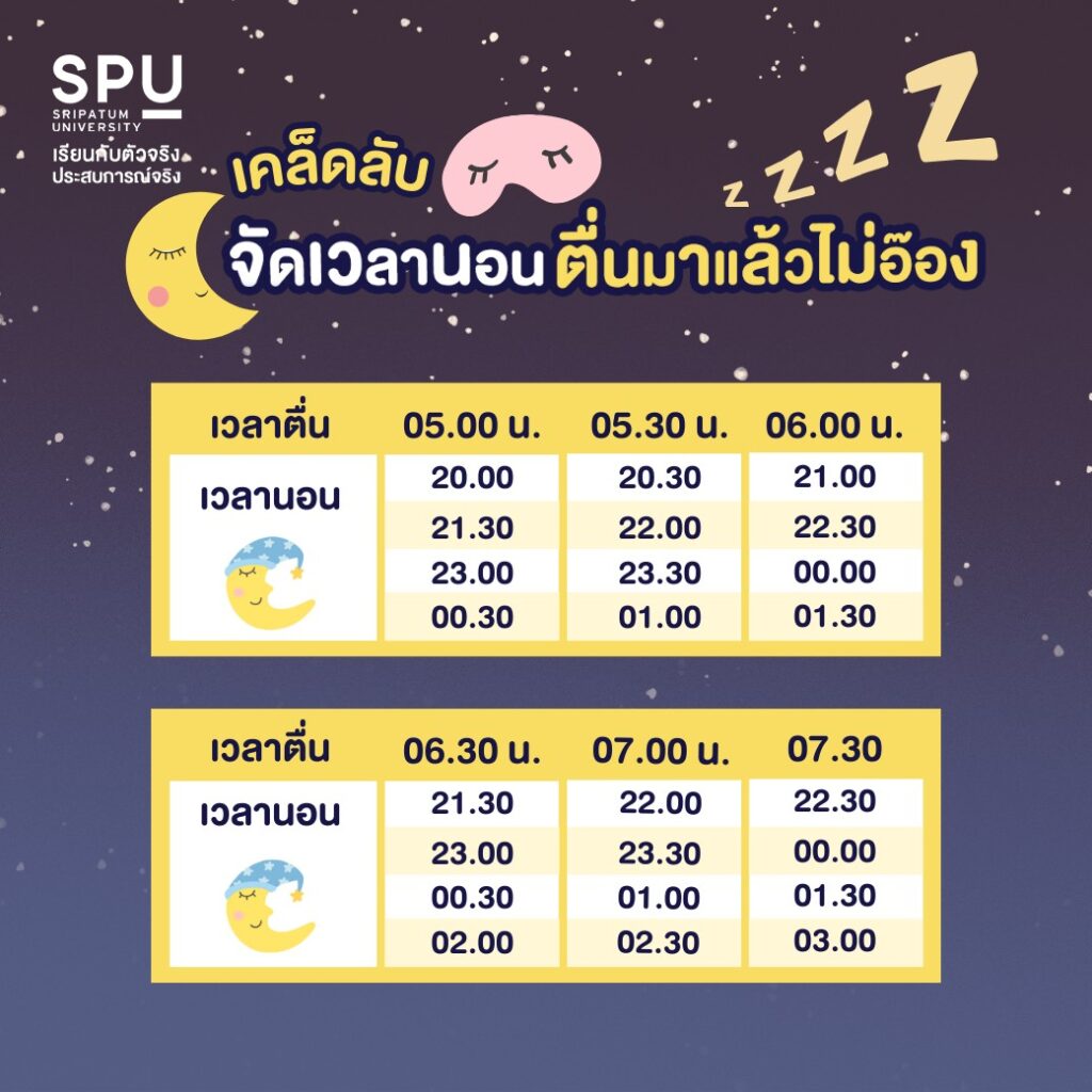 - เผื่อเวลาหลับ: ร่างกายคนเราใช้เวลาประมาณ 15 นาทีในการเริ่มหลับจริงๆ อย่าลืมลบเวลาออกจากตารางไปนิดนึงนะ