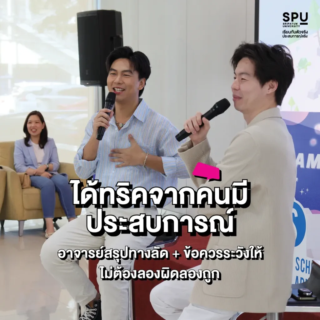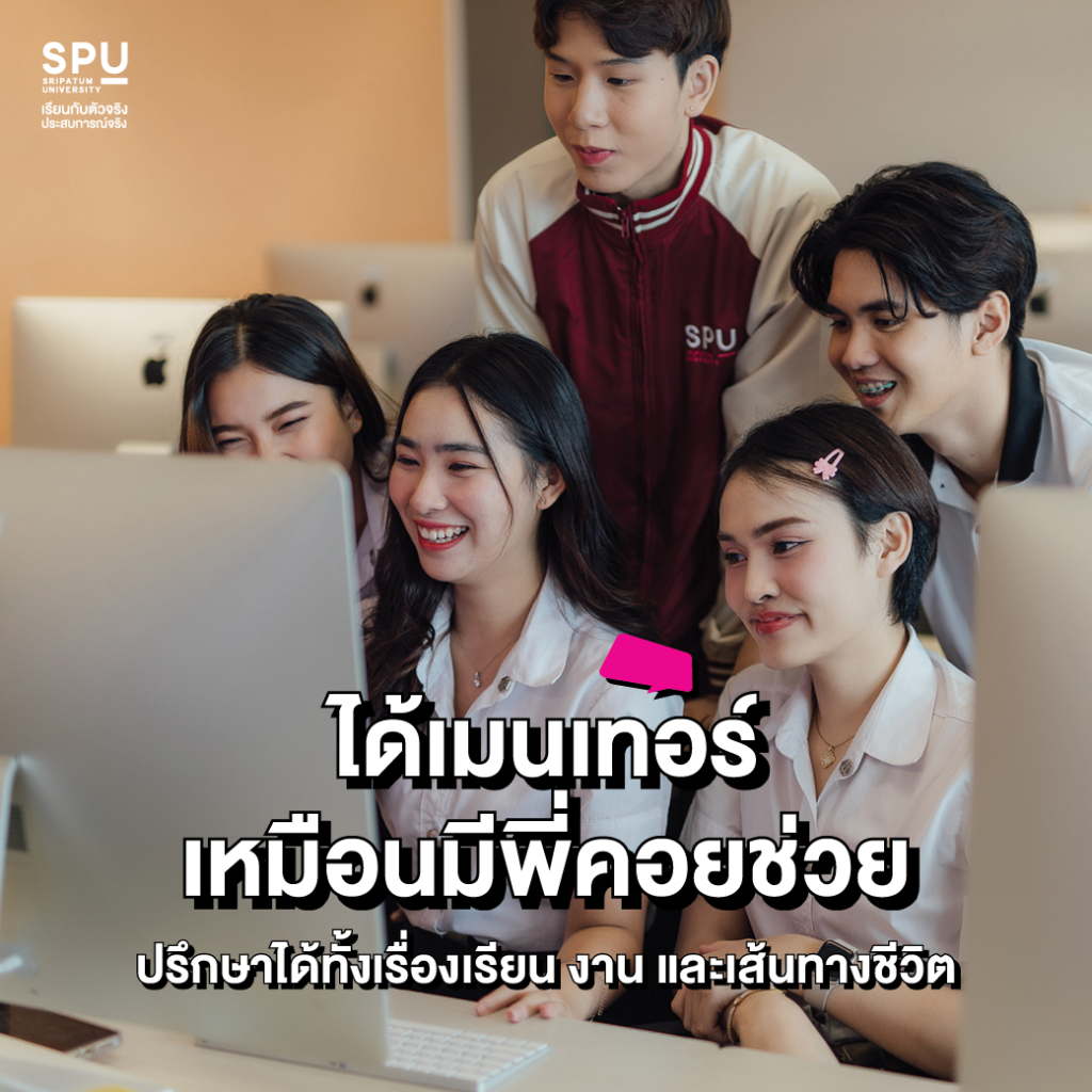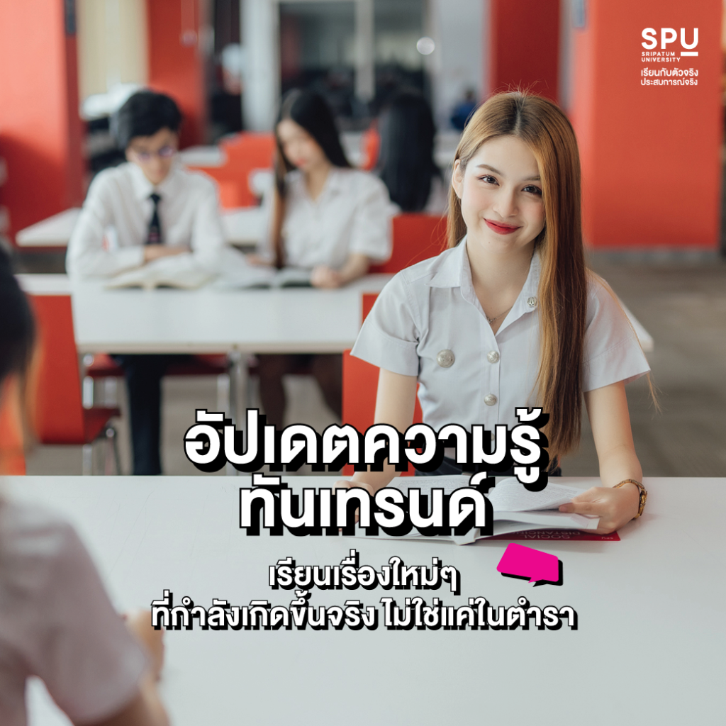 ที่ SPU เราอัปเกรดเนื้อหาใหม่ทุกเทอมตามกระแสโลกดิจิทัลและอุตสาหกรรม น้องๆ จะได้เรียนรู้เครื่องมือ เทคโนโลยี และกลยุทธ์ที่กำลังเป็นกระแสในปัจจุบัน เพื่อให้มั่นใจว่าความรู้ที่ได้รับจะไม่มีทาง “เอาท์” และพร้อมใช้งานได้ทันทีในโลกที่เปลี่ยนไปทุกวัน