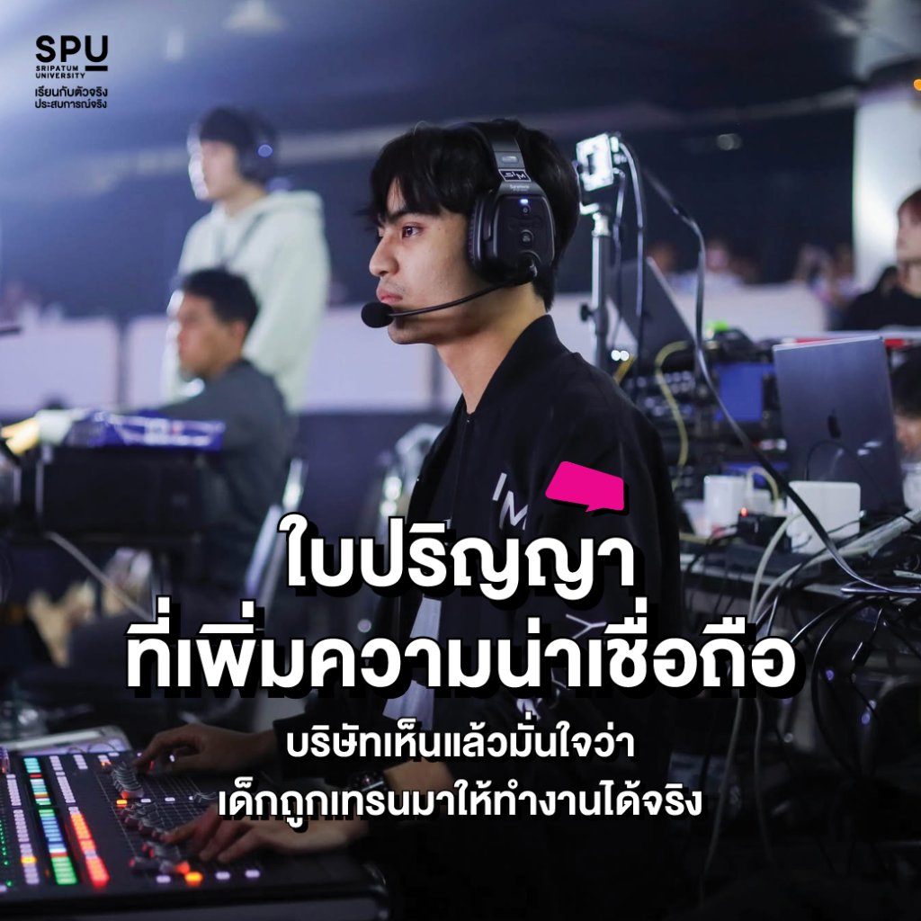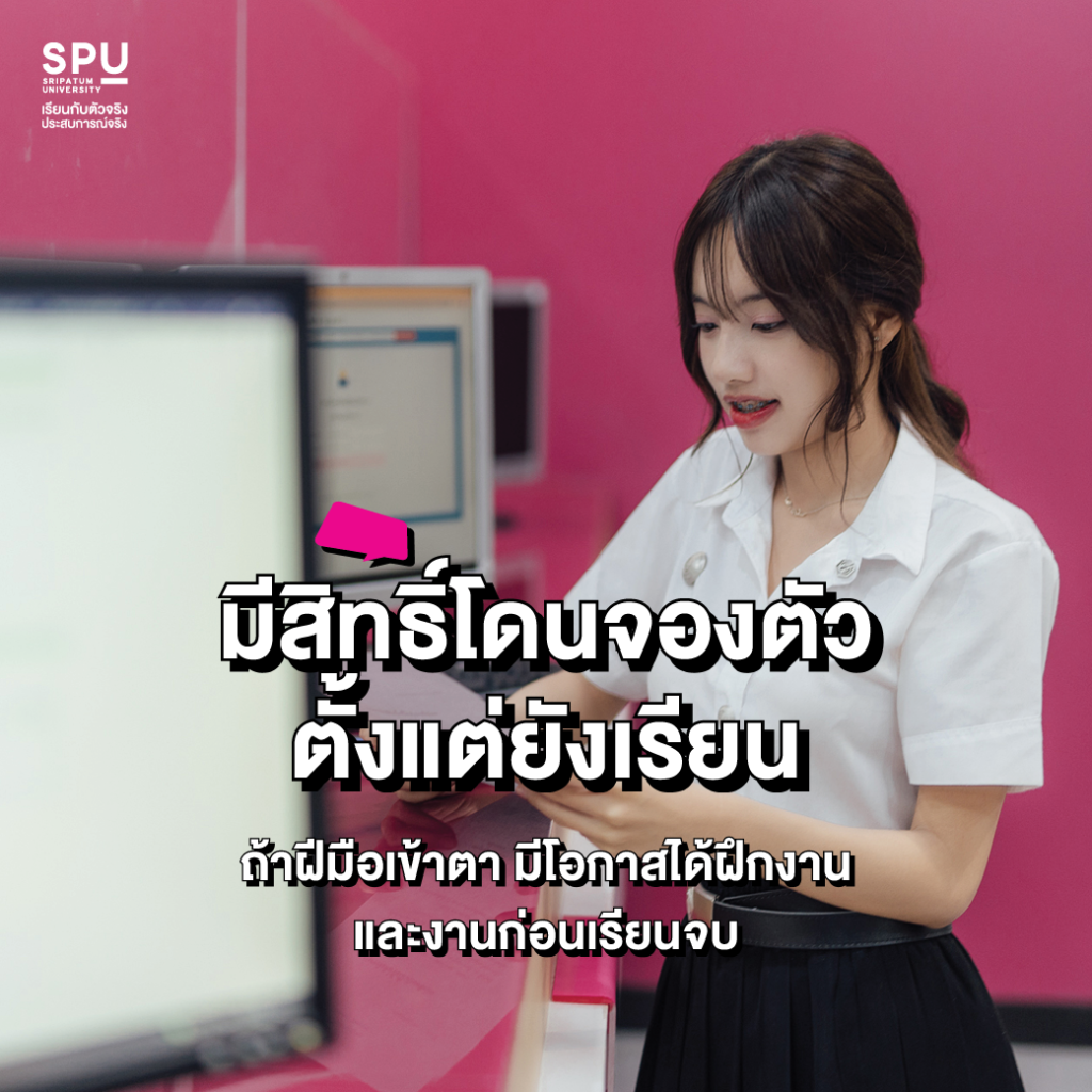 ใบปริญญาจาก SPU ไม่ใช่แค่กระดาษ แต่คือ “ใบเบิกทาง” ที่บอกกับ HR ว่าคุณถูกเทรนมาโดยตัวจริง และมีมาตรฐานสกิลที่พร้อมลุยงานได้ทันที ช่วยสร้างความมั่นใจให้กับองค์กรว่าพวกเขาจะได้รับบุคลากรที่มีคุณภาพเข้าสู่ทีม