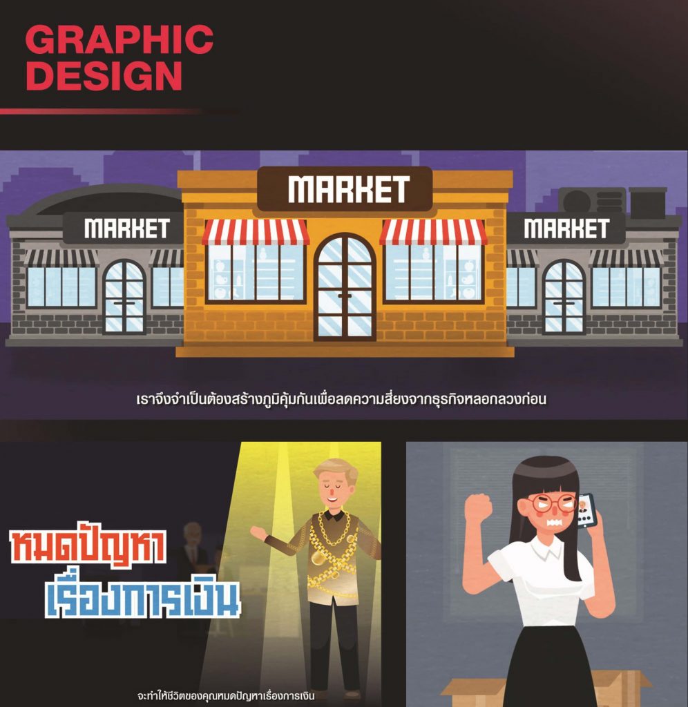 ผลงานนักศึกษาดิจิทัลมีเดีย สาขาวิชาการออกแบบกราฟิก ชื่อผลงาน หมดปัญหาเรื่องการเงิน แนวคิด : MOTION GRAPHIC เรื่องนี้ จะช่วยเป็นแนวทางให้คนที่หางานทำทางอินเทอร์เน็ตได้ศึกษาและระวัง ก่อนจะโดนหลอกลวงได้ เจ้าของผลงาน ชื่อ นัฐวุฒิ แนไพร Facebook : NATTHAWUT NAEPHAI ศิษย์เก่าโรงเรียนคลองลานวิทยา จบการศึกษาจาก คณะดิจิทัลมีเดีย สาขาวิชาการออกแบบกราฟิก