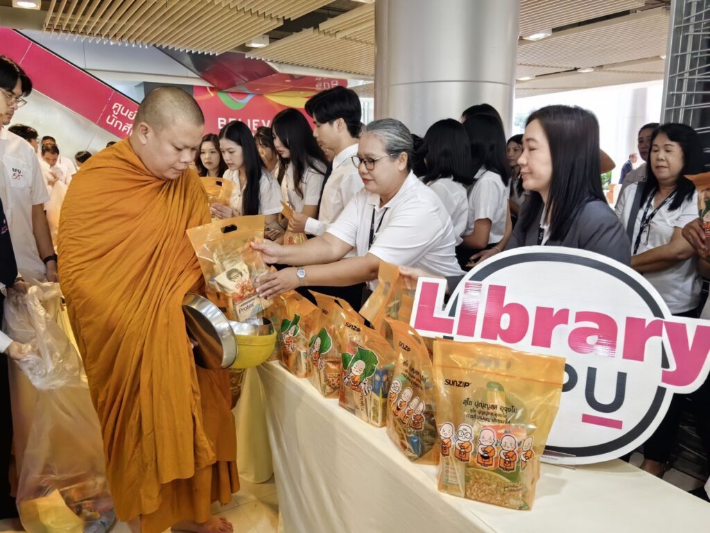 สำนักหอสมุด นำโดย ดร.อภิรดี อำนรรฆมณี ผู้อำนวยการสำนักหอสมุด พร้อมด้วยบุคลากร เข้าร่วมพิธีทำบุญตักบาตรพระสงฆ์ 19 รูป และพิธีวางพวงมาลัย เพื่อแสดงความกตัญญูและระลึกถึงผู้ก่อตั้ง ซึ่งเป็นการปลูกฝังค่านิยมแห่งการเรียนรู้ตลอดชีวิต และการมีส่วนร่วมทางสังคมให้แก่นักศึกษาและบุคลากร