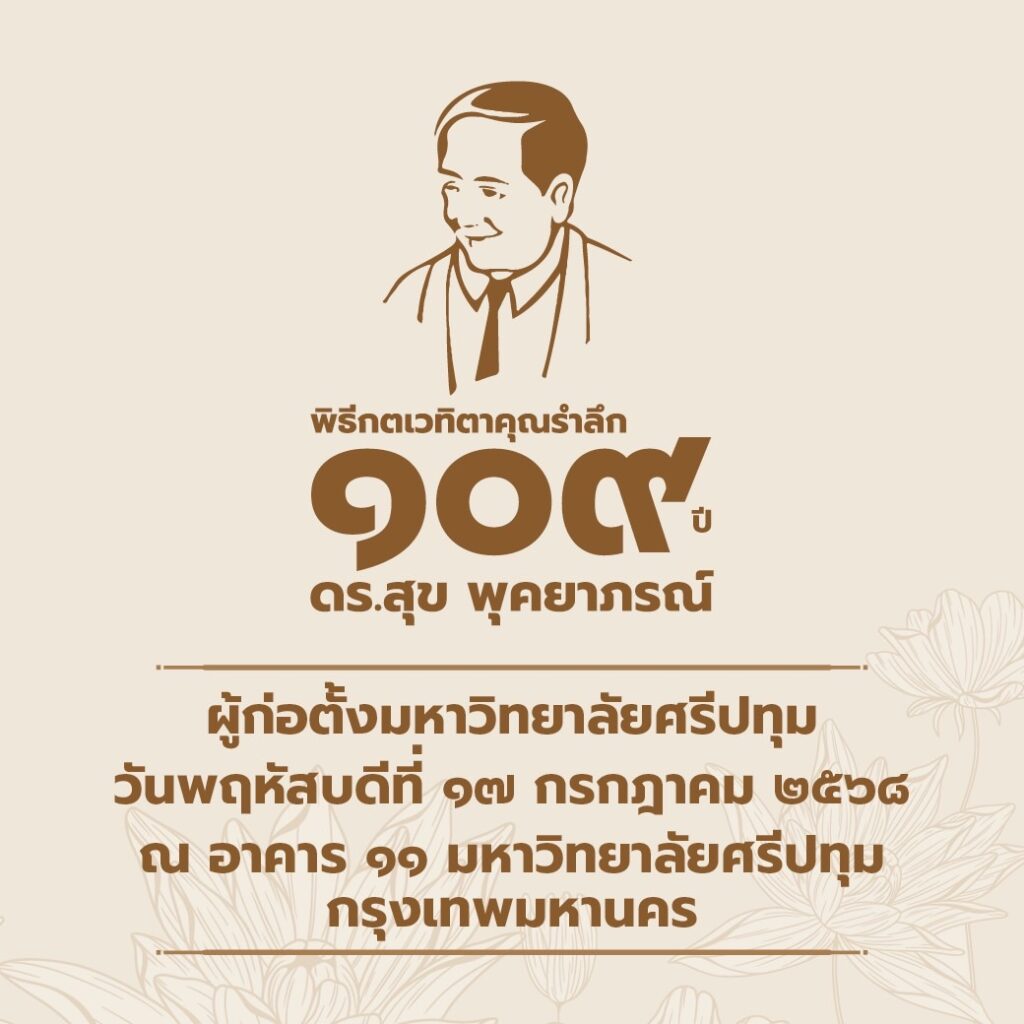 Sripatum University held a heartfelt ceremony on July 17, 2025, to commemorate the 109th anniversary of its founder, Dr. Sook Pookayaporn. The event, held at Building 11 (SPU 40th Anniversary Hall), brought together university leadership, faculty, students, and community members in a moving tribute that reflected the core values of gratitude, learning, and community service.