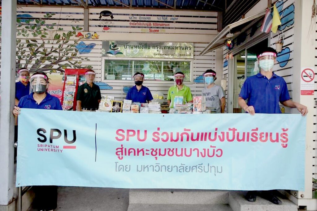 ดร.อภิรดี อำนรรฆมณี ผู้อำนวยการสำนักหอสมุด และทีมงาน มอบหนังสือ pocket books นวนิยาย และนิตยสาร จำนวนกว่า 400 รายการ ให้กับเคหะชุมชนบางบัว ในกิจกรรม “SPU ร่วมกันแบ่งปันเรียนรู้สู่เคหะชุมชนบางบัว” ระหว่างอยู่บ้าน หยุดเชื้อ เพื่อชาติ ในวันพุธที่ 22 เมษายน 2563 เวลา 10.00 น.