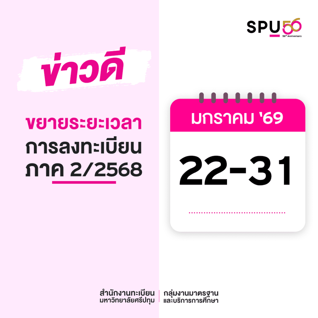 ข่าวดี !!! ขยายเวลาการลงทะเบียนภาค 2/2568 ไปจนถึงวันที่ 31 มกราคม 2569 โดยสามารถลงทะเบียนผ่านระบบ SCMS