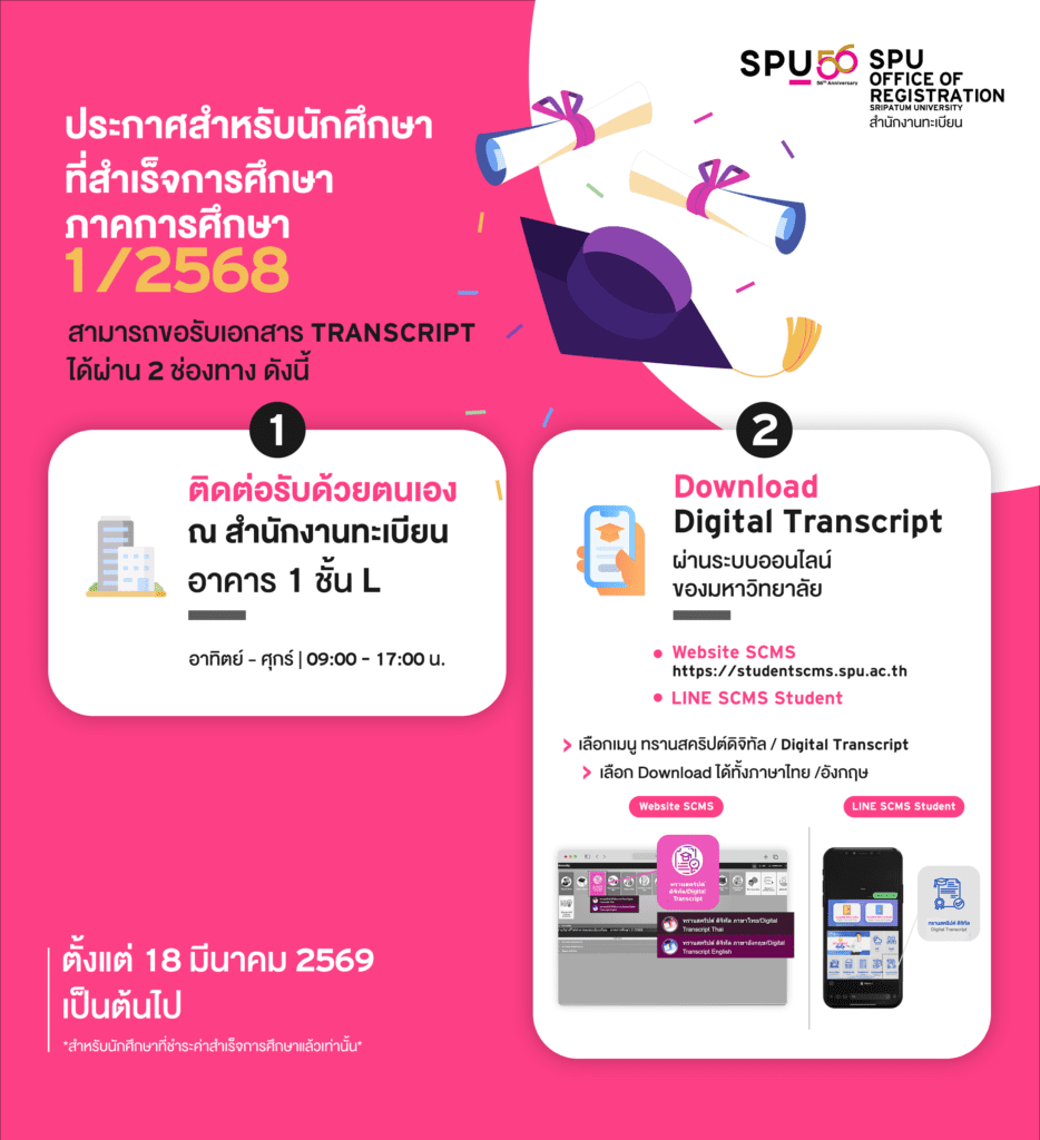 - สามารถดาวน์โหลด Digital Transcript ได้แล้ว ผ่านระบบ https://studentscms.spu.ac.th/estudent/estudentlogin1.cfm