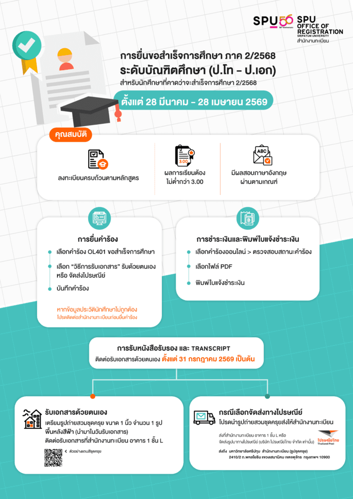 สำนักงานทะเบียนขอแจ้งกำหนดการขอสำเร็จการศึกษาระดับบัณฑิตศึกษา (ป.โท – ป.เอก)