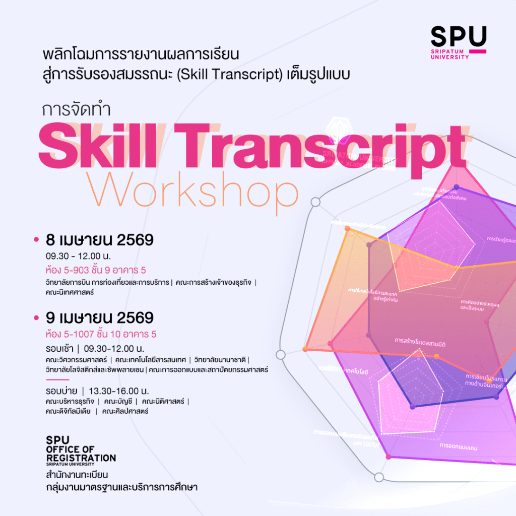 #SkillTranscript #SkillTranscriptWorkshop #SPU #อาจารย์ยุคใหม่ #ออกแบบการเรียนรู้ #วัดผลการเรียนรู้ #LearningOutcome #CLO #PLO #OBE #HigherEducation #EducationInnovation