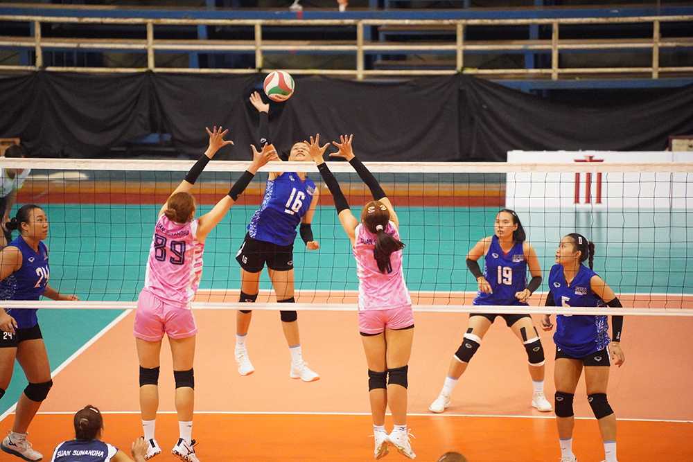 กีฬาวอลเลย์บอล ทีมหญิง ลงแข่งขันรอบสอง เอาชนะ ม.สวนสุนันทา 3 ต่อ 0 เซต