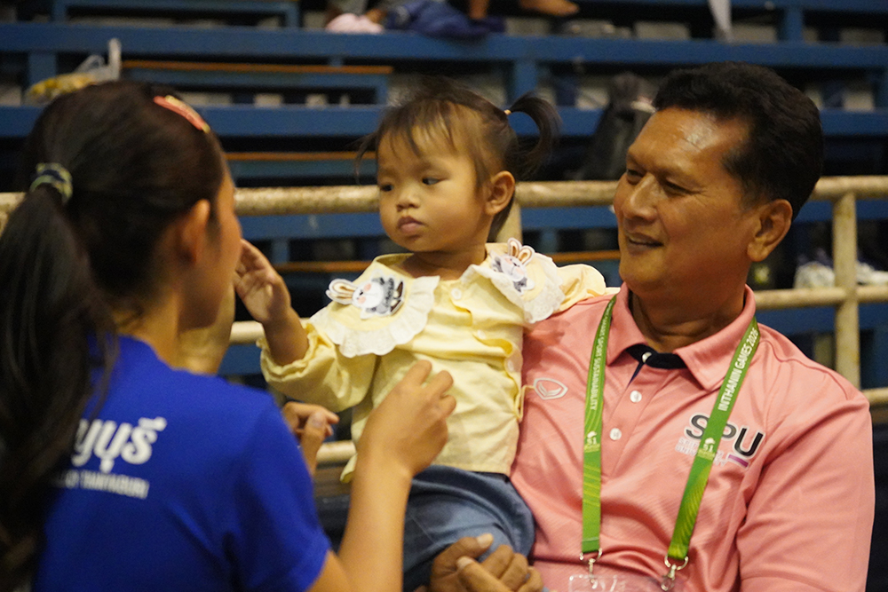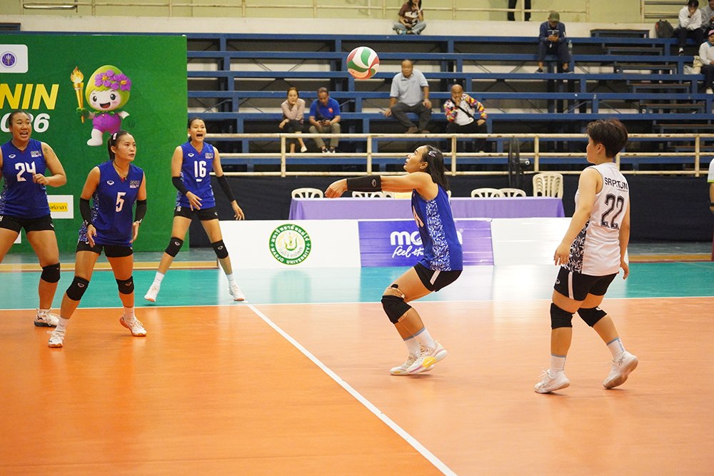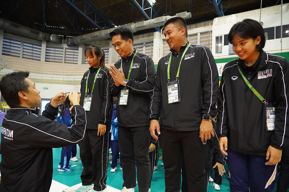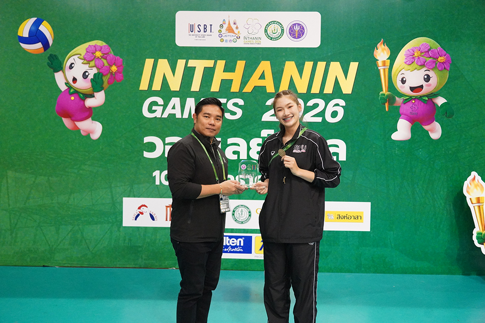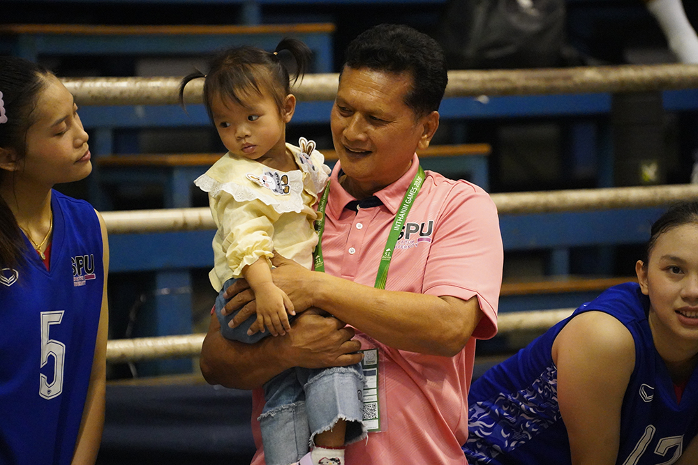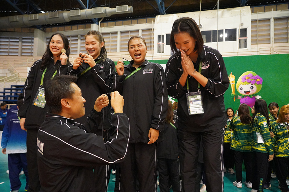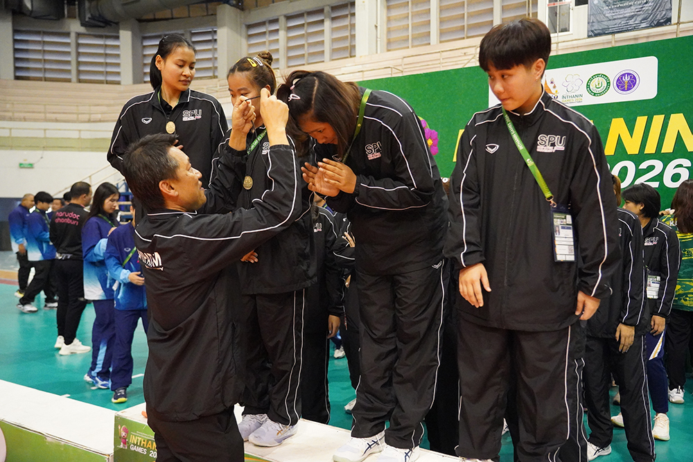 นักกีฬาวอลเลย์บอล ทีมหญิง SPU ได้แก่ ณัฐมล เหลืองวัฒนวิไล, อมลรดา ฤกษ์สว่าง, ธิดารัตน์ หมื่นพราน, วรัญญา ศรีละออง, วรกานต์ ช่างหล่อ, ปิยวรรณ พุทธรอด, นันท์นภัส มูลจะคำ, ณิชกานต์ มาลัยรักษ์, กนกพร แสงทอง, สุพัตรา ศรีระษา, สิริวัลย์ ดีแก้ว, ฑิชากร บุญเลิศ, ณิชากร วันศุกร์, ศุภานัน ศรีชัย, ศุภธิดา พุทธรอด, ศุภสุดา งามพริ้ง