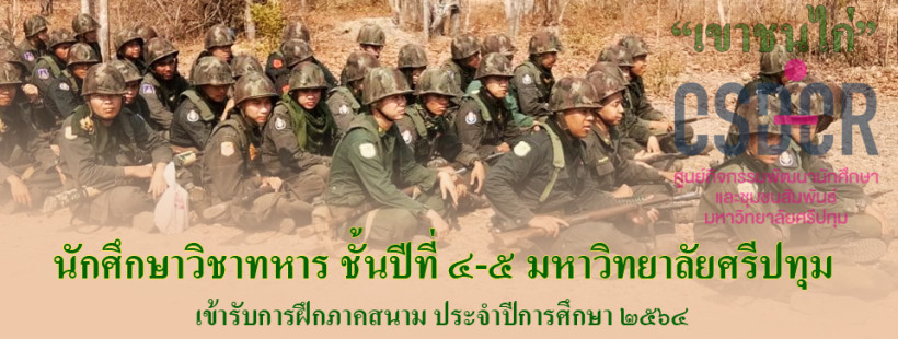 >>>— อาจารย์เฉลิมชัย สินธุอารีย์ อาจารย์ประจำศูนย์กิจกรรมพัฒนานักศึกษาและชุมชนสัมพันธ์ ในฐานะผู้กำกับนักศึกษาวิชาทหาร ประจำมหาวิทยาลัยศรีปทุม เดินทางไปกำกับดูแลและนำนักศึกษาวิชาทหาร (รด.) ชาย,หญิง ชั้นปีที่ ๔-๕ มหาวิทยาลัยศรีปทุม จำนวน ๙๐ คน เข้ารับการฝึกภาคสนาม ประจำปีการศึกษา ๒๕๖๔ ณ ค่ายฝึกนักศึกษาวิชาทหาร (เขาชนไก่) ตำบลลาดหญ้า อำเภอเมือง จังหวัดกาญจนบุรี ระหว่างวันที่ ๑๔-๒๒ กรกฏาคม ๒๕๖๕