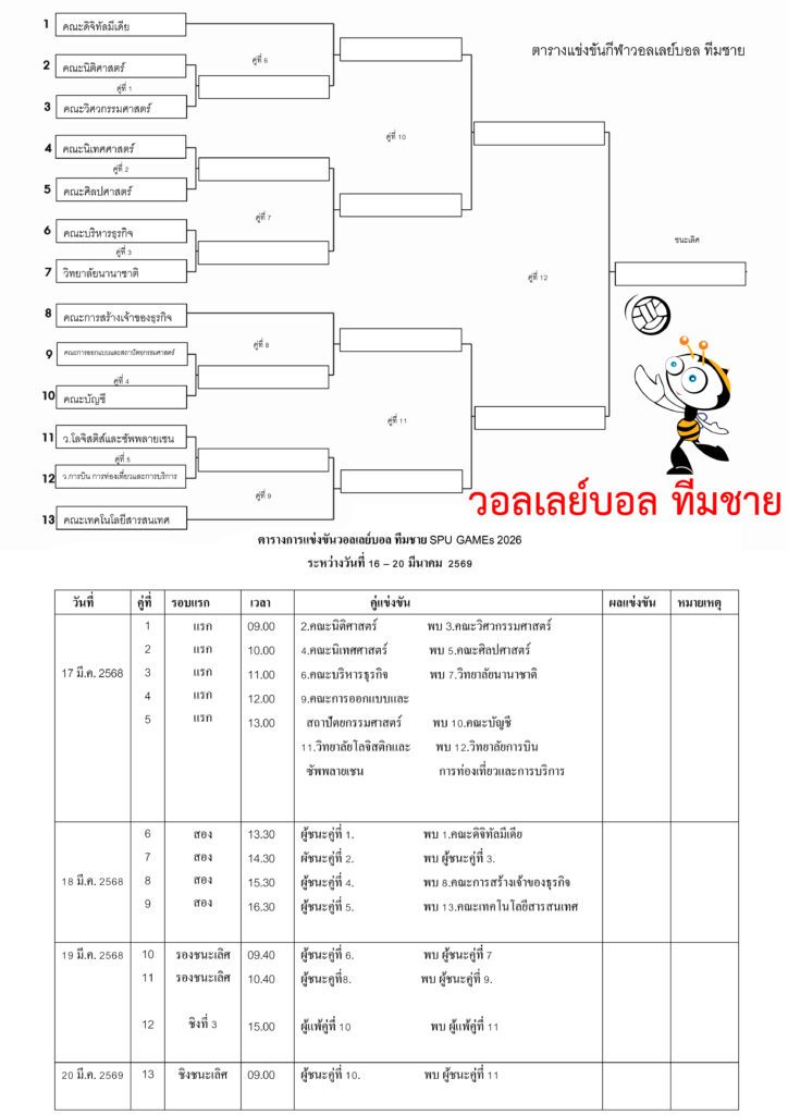 ก็ขอเรียนเชิญ คณะผู้บริหาร คณาจารย์ บุคลากร และนักศึกษา มหาวิทยาลัยศรีปทุม ทุกท่านร่วมชม ร่วมเชียร์ ร่วมเป็นเป็นกำลังใจกับการแข่งขันกีฬาภายใน SPU GAMEs 2026 ครั้งที่ 29 ประจำปีการศึกษา 2568 ระหว่างวันที่ 16-20 มีนาคม 2569 นี้ด้วยนะครับ