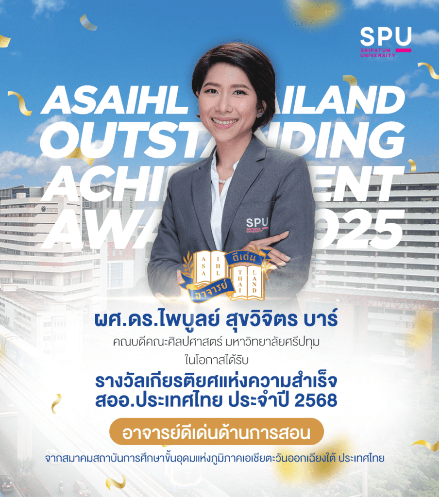 ได้รับการคัดเลือกรับ รางวัลอาจารย์ดีเด่นด้านการสอน “โครงการรางวัลเกียรติยศแห่งความสำเร็จ สออ.ประเทศไทย ปี 2568” (ASAIHL THAILAND OUTSTANDING ACHIEVEMENT AWARD 2025)