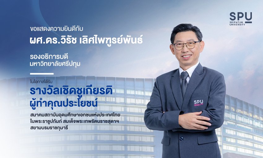 ผู้ช่วยศาสตราจารย์ ดร.วิรัช เลิศไพฑูรย์พันธ์ รองอธิการบดี มหาวิทยาลัยศรีปทุม เข้ารับรางวัลเชิดชูเกียรติผู้ทำคุณประโยชน์ สมาคมสถาบันอุดมศึกษาเอกชนแห่งประเทศไทย ในพระราชูปถัมภ์ สมเด็จพระเทพรัตนราชสุดาฯ สยามบรมราชกุมารี (สสอท.) จาก ศาสตราจารย์ ดร.ศุภชัย ปทุมนากุล ปลัดกระทรวงการอุดมศึกษา วิทยาศาสตร์ วิจัยและนวัตกรรม (อว.) เป็นประธานในพิธีฯ มอบรางวัล ในงาน “48th Anniversary of APHEIT” เนื่องในวันคล้ายวันสถาปนา สมาคมสถาบันอุดมศึกษาเอกชนแห่งประเทศไทยฯ ครบรอบปีที่ 48 ณ ห้องมัฆวานรังสรรค์ สโมสรทหารบก ถนนวิภาวดีรังสิต