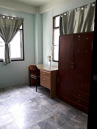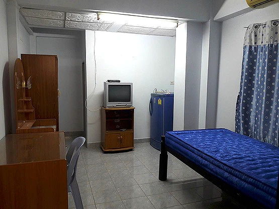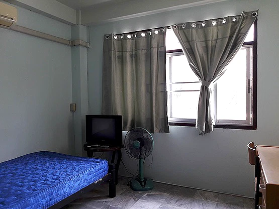 - เตียงนอน (มีที่นอนให้), ตู้เสื้อผ้า, โต๊ะอ่านหนังสือ