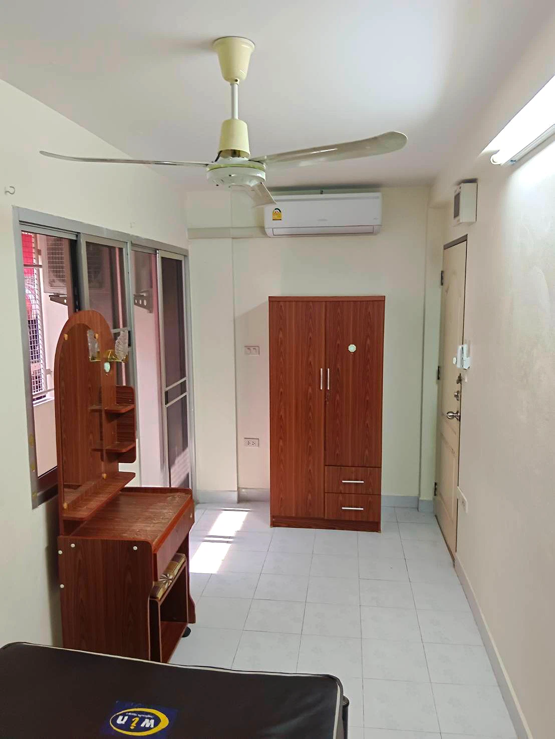 ห้องพักรายเดือนพร้อมเฟอร์นิเจอร์ ตู้เสื้อผ้า เตียง ที่นอน เข้าออกคีย์การ์ด ใกล้มหาวิทยาลัยราชภัฏพระนคร