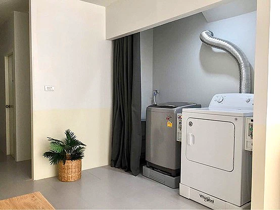 มีบริการเครื่องซักผ้าและตู้อบผ้าหยอดเหรียญภายในหอพัก