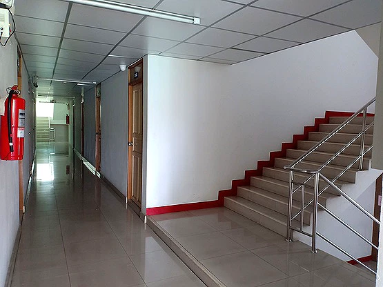 – มีบันไดหนีไฟ ถังดับเพลิงทุกชั้น