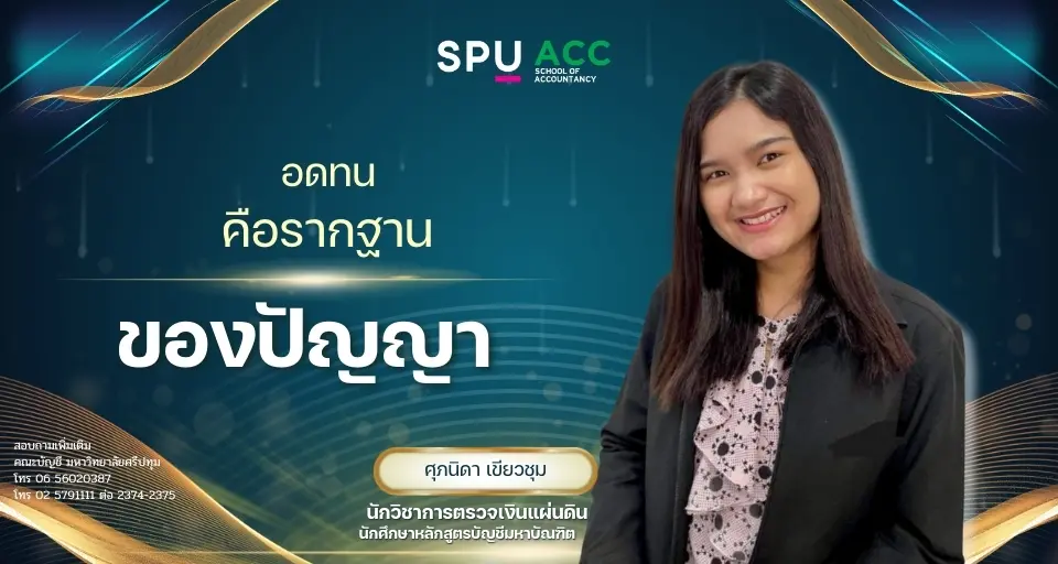 ดิฉันรู้สึกประทับใจอย่างยิ่งต่อคณะบัญชีมหาวิทยาลัยศรีปทุมทั้งในด้านคุณภาพการเรียนการสอนและบรรยากาศของการศึกษาอาจารย์ทุกท่านมีความรู้ความสามารถถ่ายทอดเนื้อหาได้อย่างเข้าใจง่ายและยังใส่ใจนักศึกษาอย่างจริงใจนอกจากวิชาการที่เข้มข้นแล้วคณะยังสนับสนุนให้นักศึกษาได้ลงมือปฏิบัติจริงผ่านกิจกรรมและโครงการต่าง ๆ ซึ่งช่วยเสริมสร้างทักษะวิชาชีพได้อย่างมีประสิทธิภาพสิ่งแวดล้อมภายในมหาวิทยาลัยก็เอื้อต่อการเรียนรู้ มีสื่อการเรียนที่ทันสมัยและสนับสนุนการพัฒนาตนเองในหลายด้าน ทำให้ดิฉันมีความรู้สึกภูมิใจที่ได้เป็นส่วนหนึ่งของคณะบัญชีแห่งนี้และเชื่อมั่นว่าประสบการณ์ที่ได้รับจะเป็นพื้นฐานที่มั่นคงสำหรับอนาคตทางวิชาชีพของตน