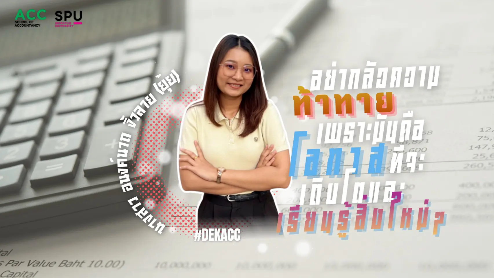เลือกเรียนบัญชีที่ SPU คือการลงทุนเพื่ออนาคตที่ไม่ว่าเทคโนโลยีจะเปลี่ยนไปไวแค่ไหน คุณก็พร้อมที่จะเป็นผู้นำเสมอ!