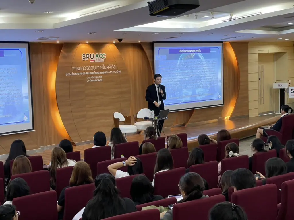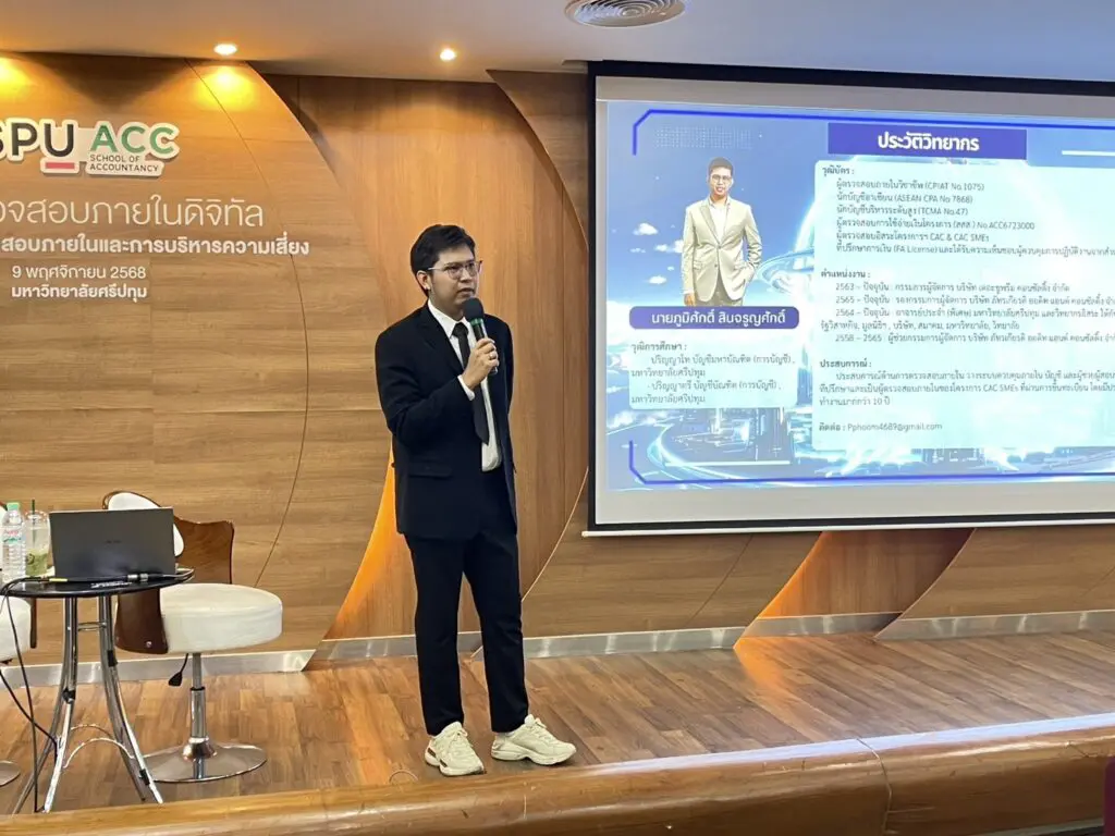 คณะบัญชี ม.ศรีปทุม ✨ จัดโครงการ “การตรวจสอบภายในดิจิทัล” เพื่อเสริมองค์ความรู้ด้านการตรวจสอบภายในและการบริหารความเสี่ยง โดยได้รับเกียรติจาก คุณภูมิศักดิ์ สินจรูญศักดิ์ (CPIAT, FA License, TCMA, ASEAN CPA), กรรมการผู้จัดการ บริษัท เดอะซูพรีม คอนซัลติ้ง จำกัด 🏢 มาร่วมถ่ายทอดประสบการณ์จริงและการใช้เทคโนโลยีอัจฉริยะในการตรวจสอบภายใน เพื่อยกระดับประสิทธิภาพและธรรมาภิบาลขององค์กรในยุคดิจิทัล 🚀