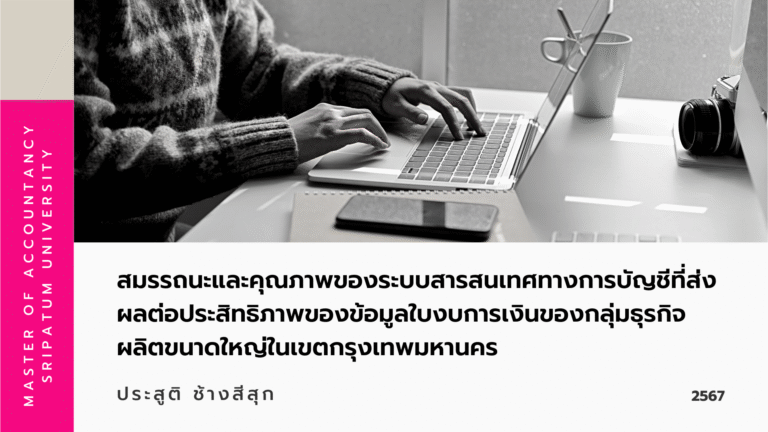 บทความวิจัยนักศึกษา สมรรถนะและคุณภาพของระบบสารสนเทศทางการบัญชีที่ส่งผลต่อประสิทธิภาพของข้อมูลใบงบการเงินของกลุ่มธุรกิจผลิตขนาดใหญ่ในเขตกรุงเทพมหานคร อ่านเพิ่มเติม »