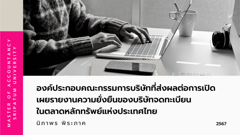 บทความวิจัยนักศึกษา ผลกระทบของความรับผิดชอบต่อสังคม องค์ประกอบคณะกรรมการบริษัท และการเปิดเผยรายงานความยั่งยืนที่ส่งผลต่อประสิทธิภาพผลการดำเนินงานของบริษัทจดทะเบียนในตลาดหลักทรัพย์แห่งประเทศไทย อ่านเพิ่มเติม »