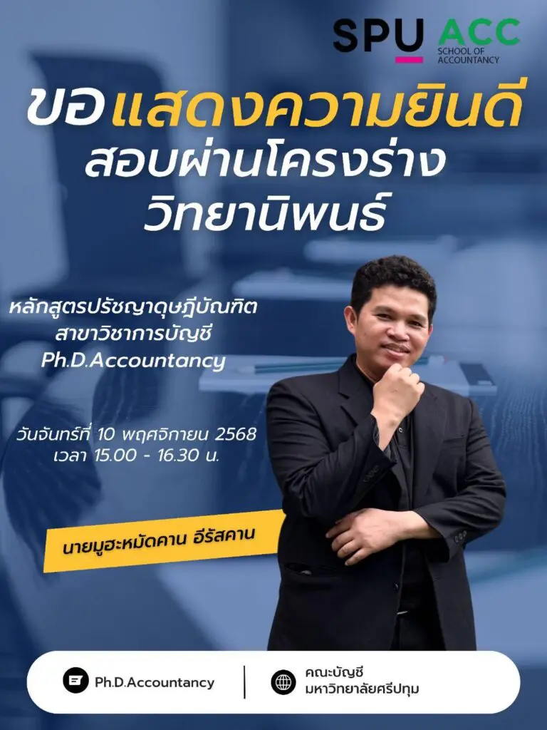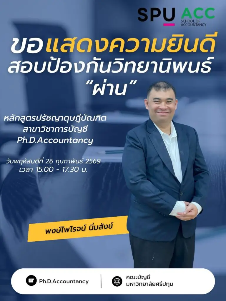 ข่าว-กิจกรรมระดับบัณฑิตศึกษา SPU ACC ขอแสดงความยินดีกับนักศึกษา ป.เอก บัญชี SPU ทั้ง 3 ท่าน นางส อ่านเพิ่มเติม »