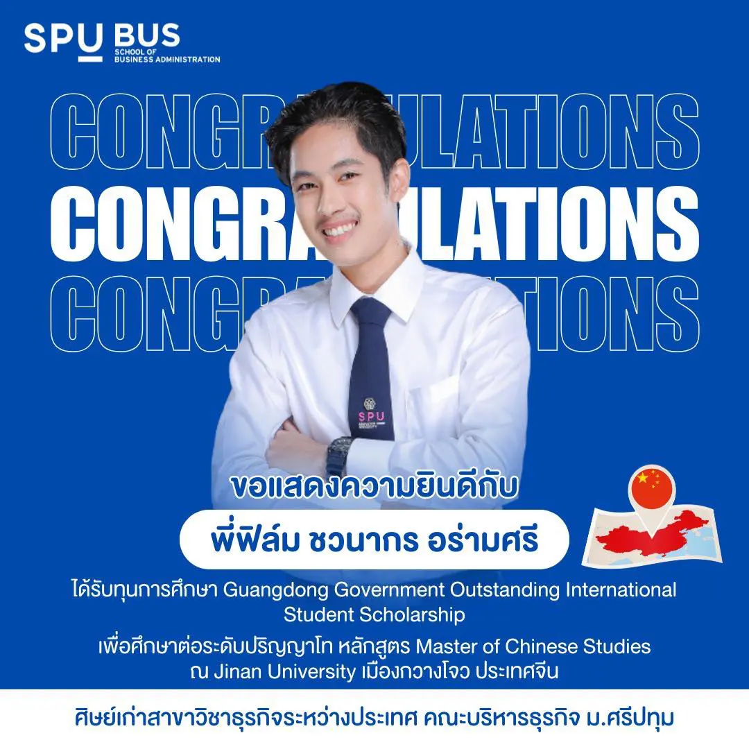 ศิษย์เก่าธุรกิจระหว่างประเทศ คณะบริหารธุรกิจ ม.ศรีปทุม ได้ทุนปริญญาโทเต็มจำนวน Master of Chinese Studies @Jinan University เมืองกวางโจว ประเทศจีน