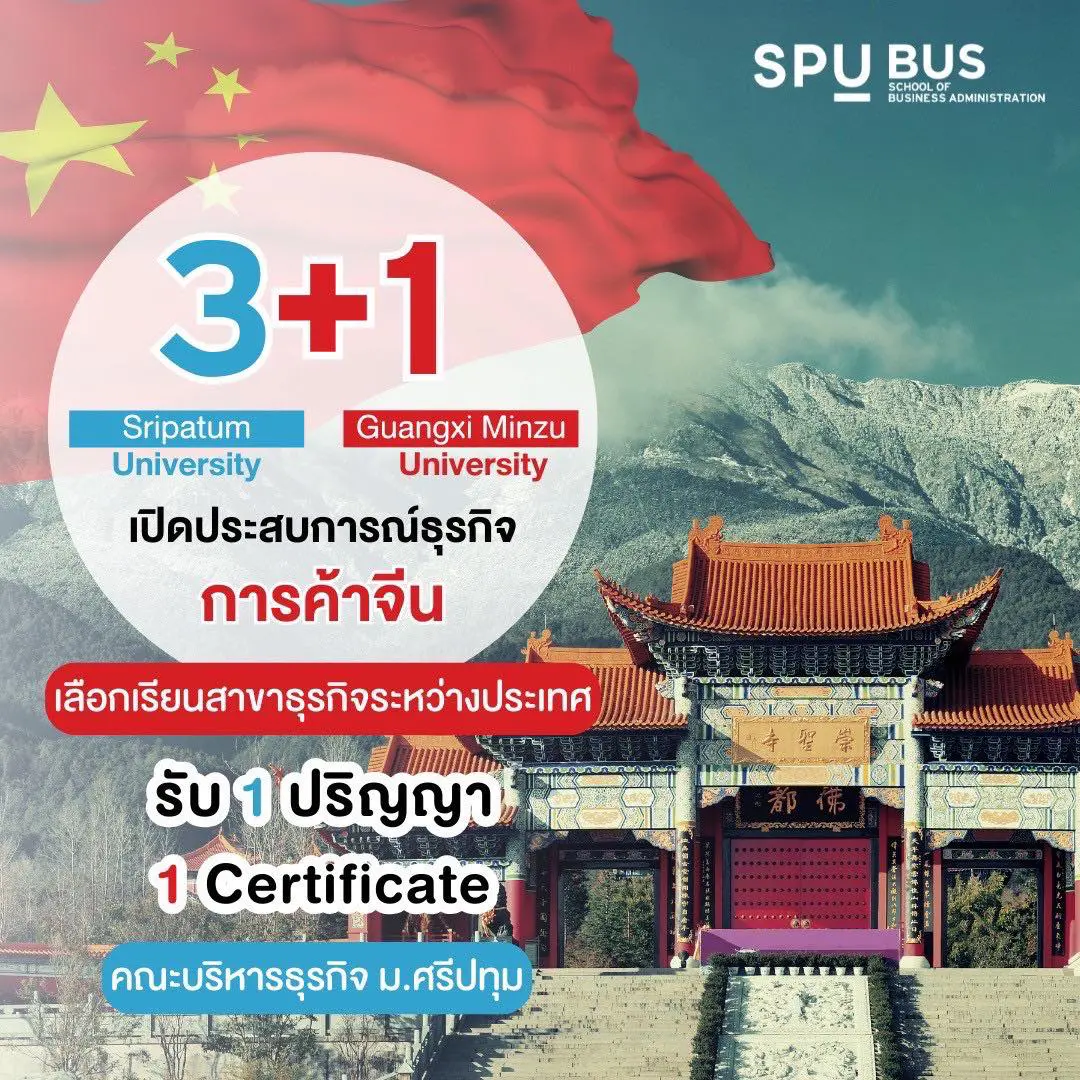 เรียน 3 ปีที่ คณะบริหารธุรกิจ SPU + 1 ภาคเรียนที่ Guangxi Minzu University เมืองหนานหนิง ประเทศจีน
