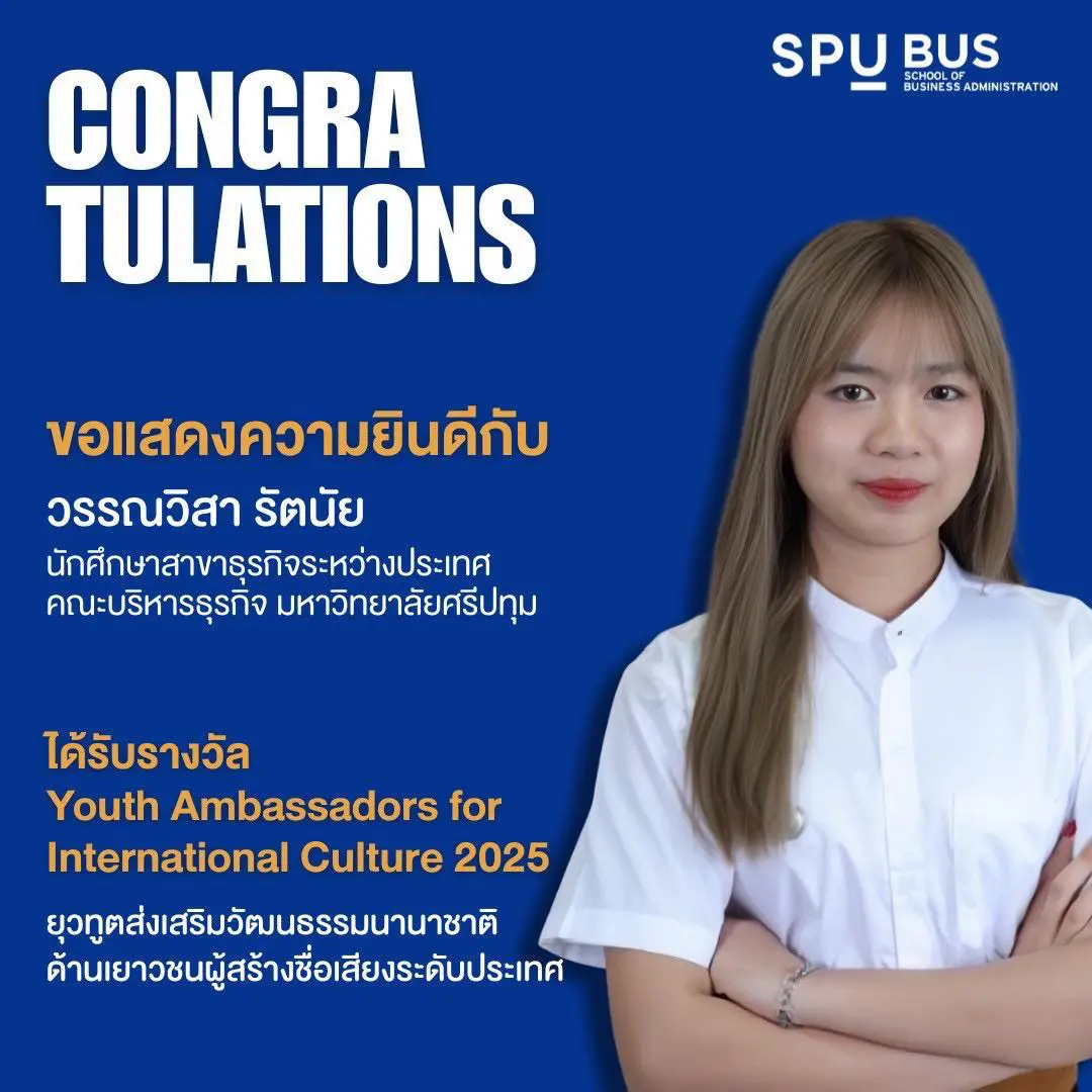 SPUBUS Go Inter! ร่วมแสดงความยินดีกับ “จ๊ะจ๋า – วรรณวิสา รัตนัย” นักศึกษาสาขาวิช