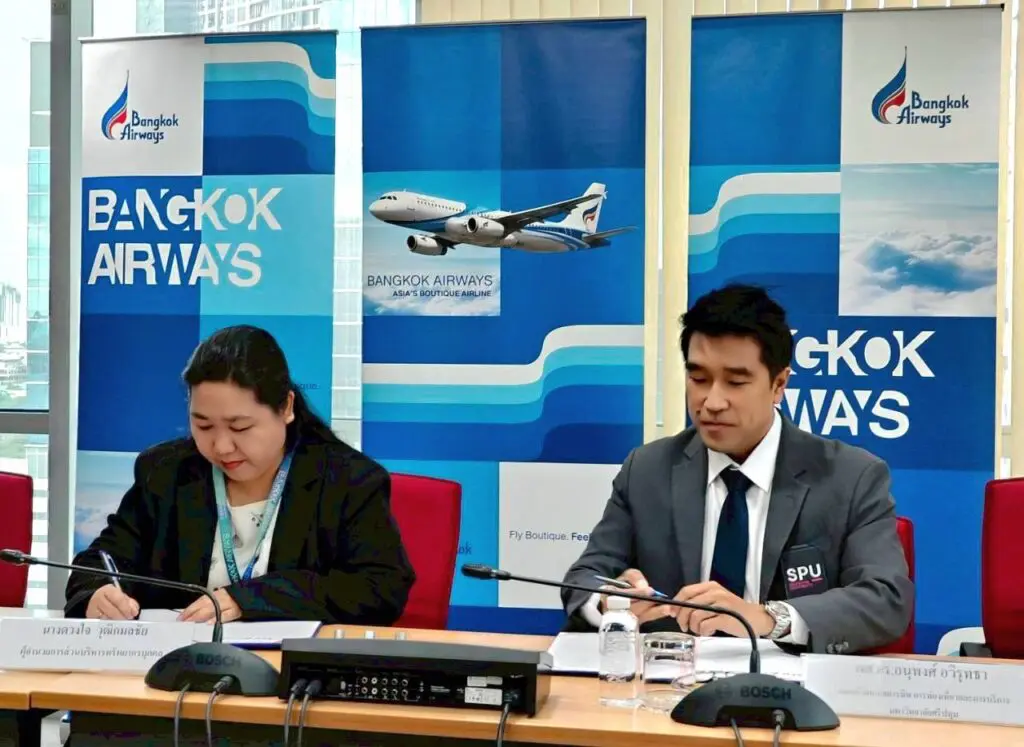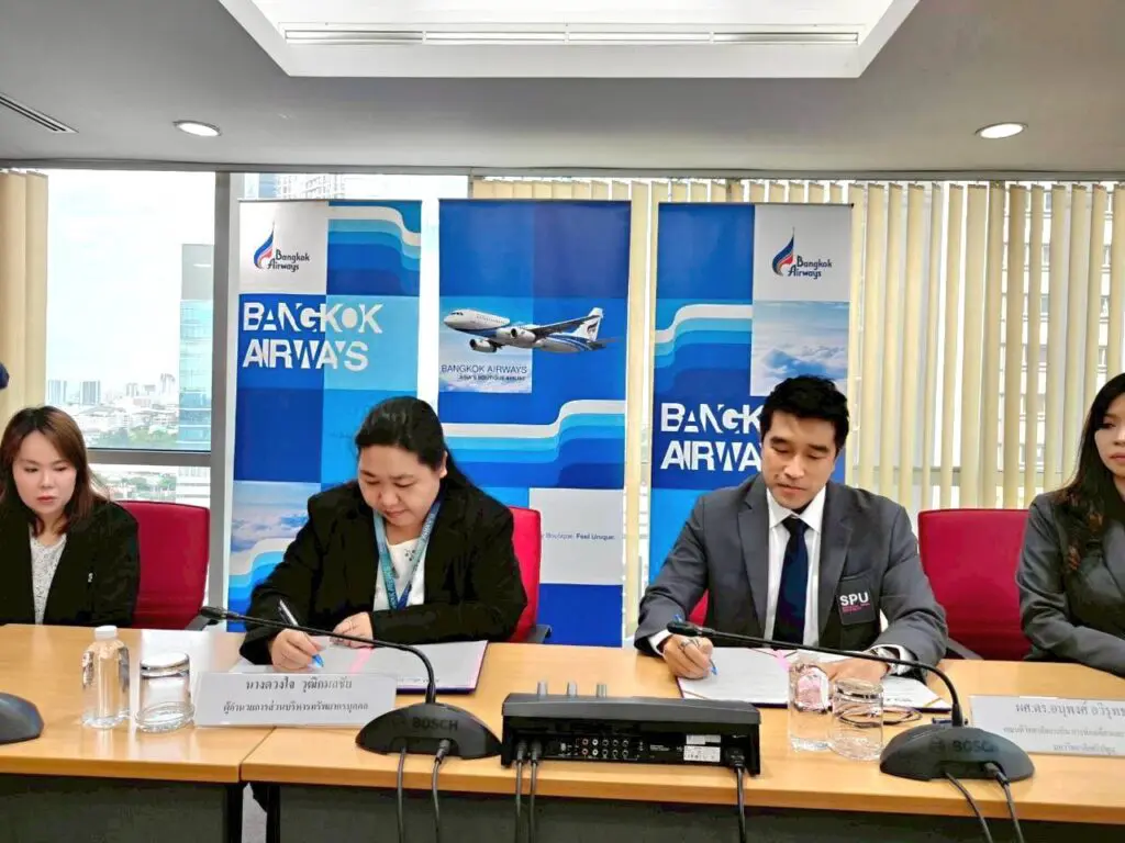 บริษัท การบินกรุงเทพ จำกัด (มหาชน) ร่วมกับ มหาวิทยาลัยศรีปทุม จัดพิธีลงนามบันทึกข้อตกลงความร่วมมือทางวิชาการ (MOU) เพื่อเสริมสร้างและพัฒนาศักยภาพนักศึกษาให้มีความพร้อมเข้าสู่สายงานด้าน ธุรกิจการบิน อย่างเป็นระบบและสอดคล้องกับความต้องการของอุตสาหกรรมการบิน