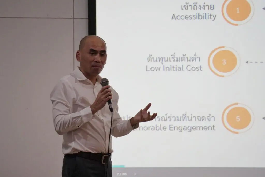 เป็นวิทยากรถ่ายทอดองค์ความรู้และประสบการณ์ด้านเทคโนโลยี AR เพื่อให้ผู้เข้าอบรมสามารถนำไปประยุกต์ใช้ในการสร้างสื่อท่องเที่ยวรูปแบบใหม่ได้อย่างสร้างสรรค์