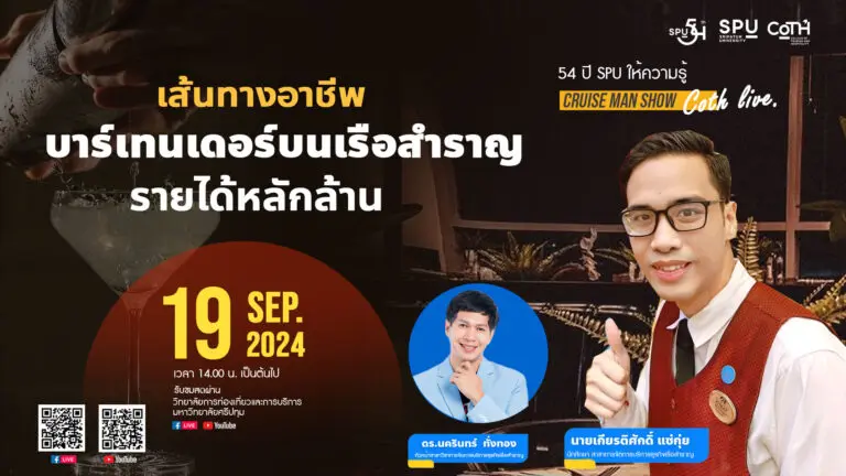 https://www.youtube.com/watch?v=_U2kOkQdS0k&ab_channel=%E0%B8%A7%E0%B8%B4%E0%B8%97%E0%B8%A2%E0%B8%B2%E0%B8%A5%E0%B8%B1%E0%B8%A2%E0%B8%81%E0%B8%B2%E0%B8%A3%E0%B8%97%E0%B9%88%E0%B8%AD%E0%B8%87%E0%B9%80%E0%B8%97%E0%B8%B5%E0%B9%88%E0%B8%A2%E0%B8%A7%E0%B9%81%E0%B8%A5%E0%B8%B0%E0%B8%81%E0%B8%B2%E0%B8%A3%E0%B8%9A%E0%B8%A3%E0%B8%B4%E0%B8%81%E0%B8%B2%E0%B8%A3%E0%B8%A1.%E0%B8%A8%E0%B8%A3%E0%B8%B5%E0%B8%9B%E0%B8%97%E0%B8%B8%E0%B8%A1 CoTH LIVE:传播的艺术,斯里帕图姆大学旅游与酒店学院 客人 Subhashaya Jarupeng (Nong Meen)酒店商务与旅游体验设计专业学生
