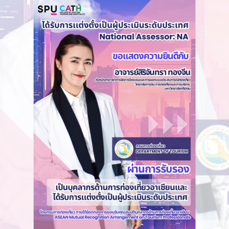 วิทยาลัยการบิน การท่องเที่ยวและการบริการ มหาวิทยาลัยศรีปทุม (SPU CATH) ขอแสดงความยินดีกับนางสาวณัฐณิชา อยู่เสถียร (น้องณิชา)นักศึกษาสาขาการจัดการธุรกิจโรงแรมและการออกแบบประสบการณ์ท่องเที่ยว
