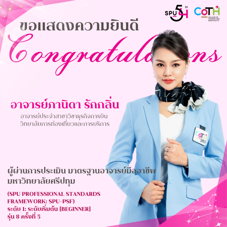 ขอแสดงความยินดีกับ “อาจารย์ภานิดา รักกลิ่น” อาจารย์ประจำสาขาวิชาธุรกิจการบิน วิทยาลัยการท่องเที่ยวและการบริการ ม.ศรีปทุม