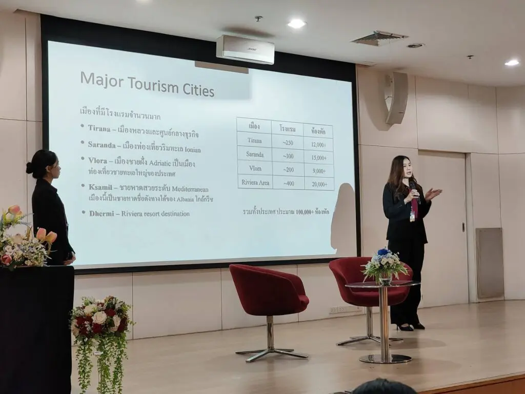 ภายในงาน นักศึกษาได้รับฟังข้อมูลและประสบการณ์ตรงจาก Recruiter ผู้เชี่ยวชาญในสายงาน ซึ่งมาร่วมถ่ายทอดแนวทางการทำงานในต่างประเทศ พร้อมเปิดโอกาสในการทำงานในประเทศแอลเบเนีย
