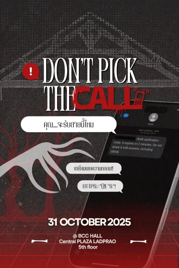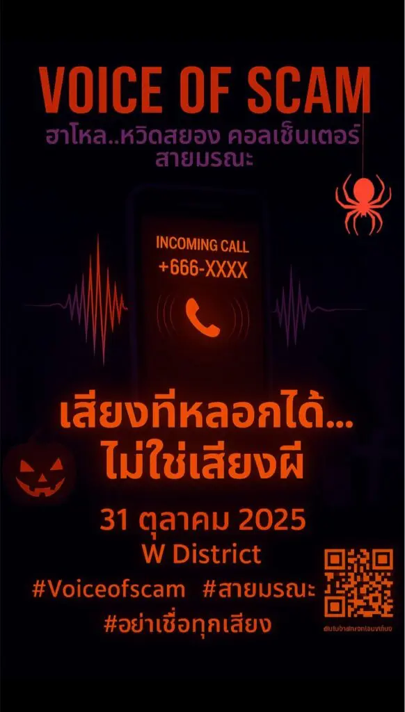 - บูธจำลองสถานการณ์: ผู้เข้าร่วมงานจะได้ลองรับสายจาก “คอลเซ็นเตอร์ผี” ที่จำลองบทสนทนาและกลโกงยอดฮิต เพื่อให้ทุกคนได้ฝึกตั้งสติและเรียนรู้วิธีรับมือ