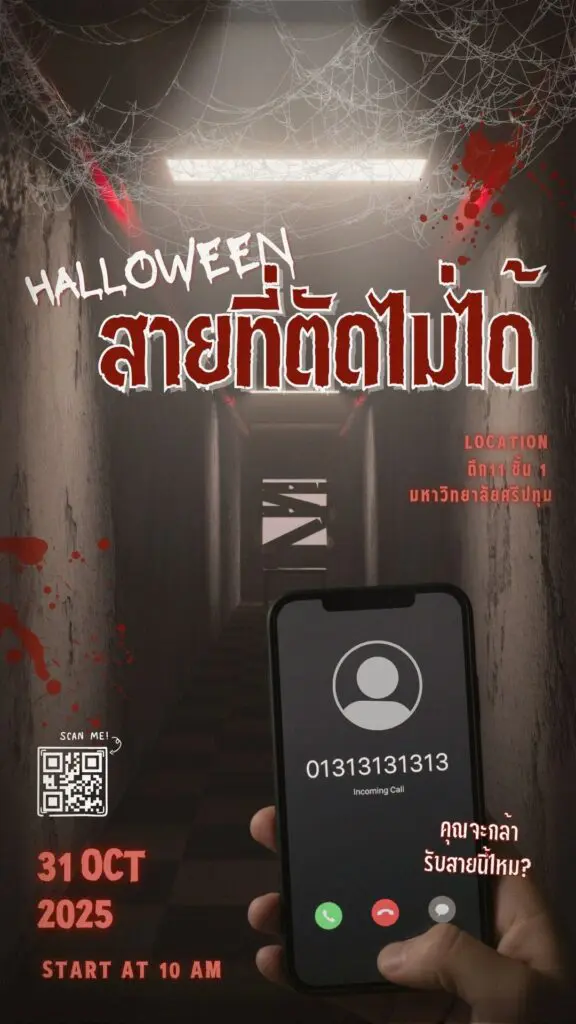 ความคิดสร้างสรรค์ของเด็กนิเทศฯ มันต้องไม่ธรรมดา! แทนที่จะจัดบูธให้ความรู้แบบเดิมๆ ทีมงานเลือกใช้ช่วงเทศกาลฮาโลวีนมาผสานกับแคมเปญเตือนภัย กลายเป็น #HalloweenCampaign ที่เปลี่ยนความน่ากลัวของภูตผีให้กลายเป็นสัญลักษณ์แทน “ความน่ากลัวของแก๊งคอลเซ็นเตอร์” ที่หลอกลวงจนหมดตัว ซึ่งน่ากลัวกว่าผีไหนๆ!