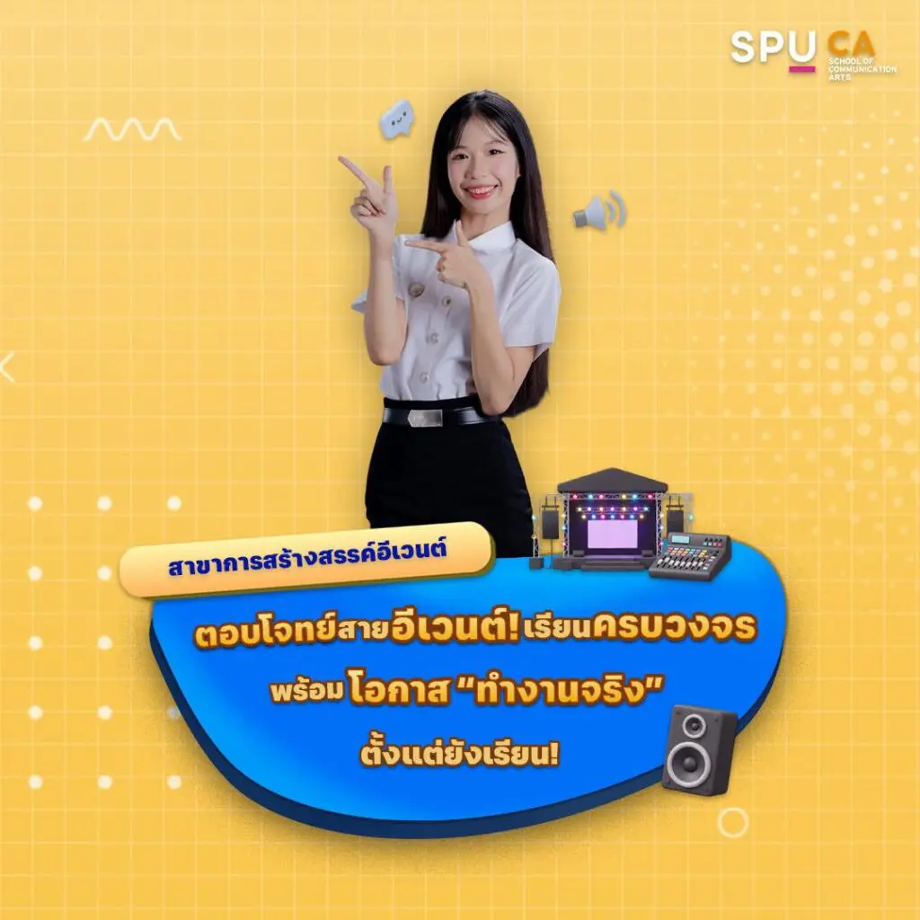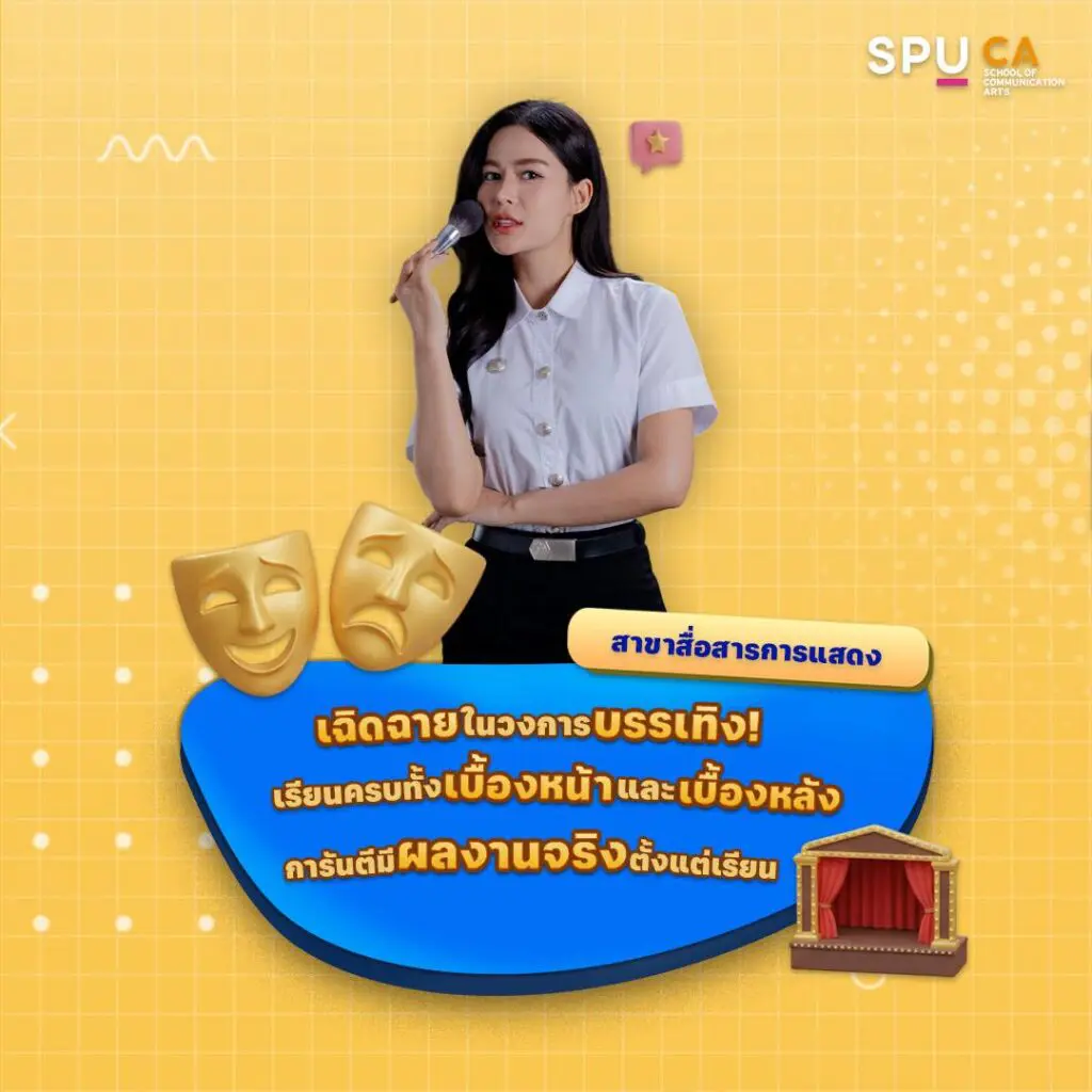 หลักสูตรของ #SPUCA ในสาขานี้จะเน้นการเรียนรู้รอบด้าน ทั้งการแสดงสำหรับละครเวที, ภาพยนตร์, และละครโทรทัศน์, การพัฒนาบุคลิกภาพ, การใช้เสียง, การเป็นพิธีกร (MC), VJ, DJ ไปจนถึงการเป็น Influencer และ Live Streamer ในยุคดิจิทัล ที่สำคัญคือเรามี Connection กับวงการบันเทิงตัวจริง! มีโอกาสได้ไปแคสติ้งงานจริง เวิร์กช็อปกับนักแสดงและผู้กำกับมืออาชีพมากมาย ใครจะไปรู้ ดาวดวงต่อไปของวงการอาจจะเป็น #DekNitedSPU อย่างเธอก็ได้!