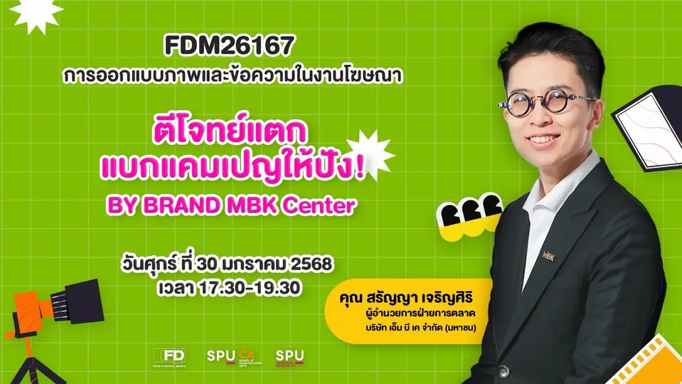 โดยได้รับโจทย์จาก Brand ชั้นนำ Brand MBK Center และ Brand Deepcare เพื่อมาให้โจทย์แก่นักศึกษารายวิชา FDM26167 การออกแบบภาพและข้อความในงานโฆษณา