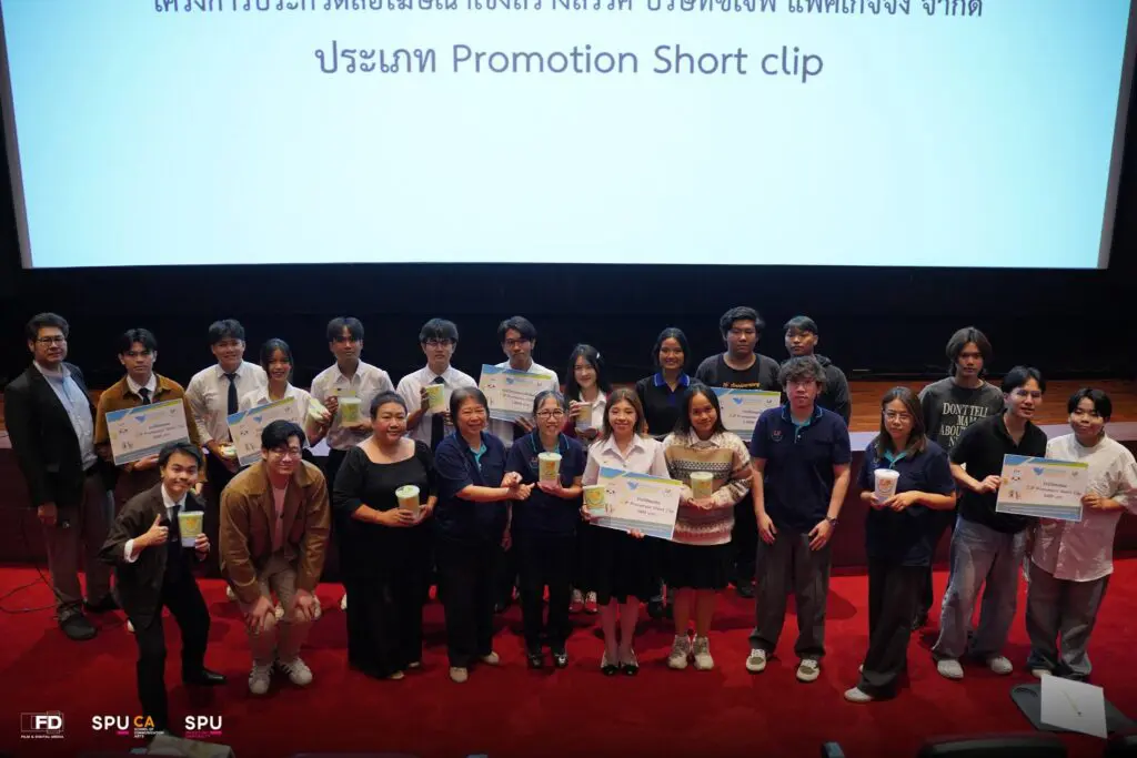 สาขาภาพยนตร์และสื่อดิจิทัล คณะนิเทศศาสตร์ มหาวิทยาลัยศรีปทุม ขอแสดงความยินดีกับทีม Horizone Studio นักศึกษาฟิล์ม FD67 ที่สามารถคว้า 2 รางวัล จากโครงการประกวดสื่อโฆษณาเชิงสร้างสรรค์ ของบริษัท ซีเจพี แพ็คเกจจิ้ง จำกัด ผู้นำด้านบรรจุภัณฑ์พลาสติกและนวัตกรรมการผลิตระดับประเทศ