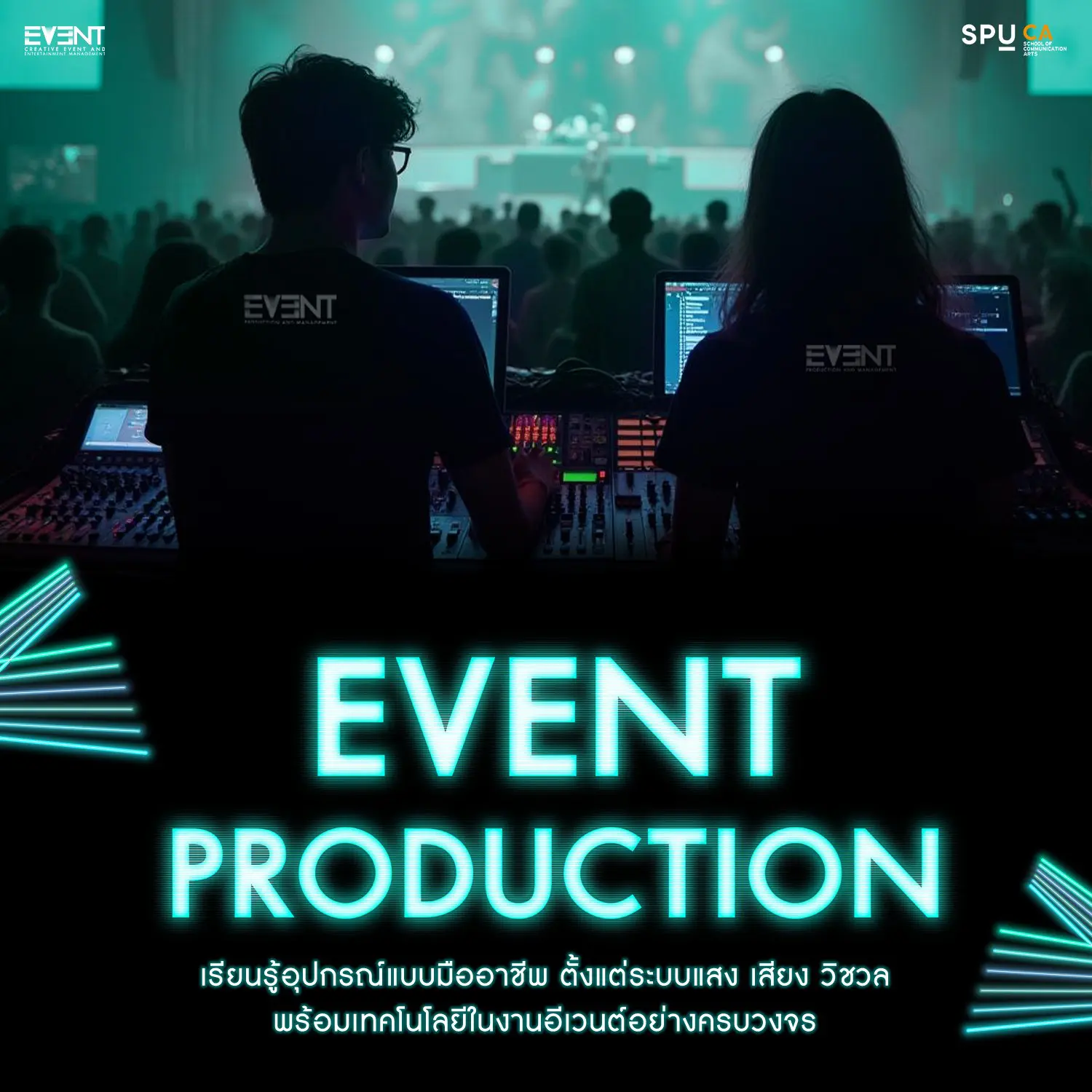 เรียนรู้ครบทุกด้านแบบมืออาชีพ Crative , Production , Entertainment สร้างประสบการณ์ในงานอีเวนต์ทุกรูปแบบด้วยหลักสูตรที่ทันสมัย