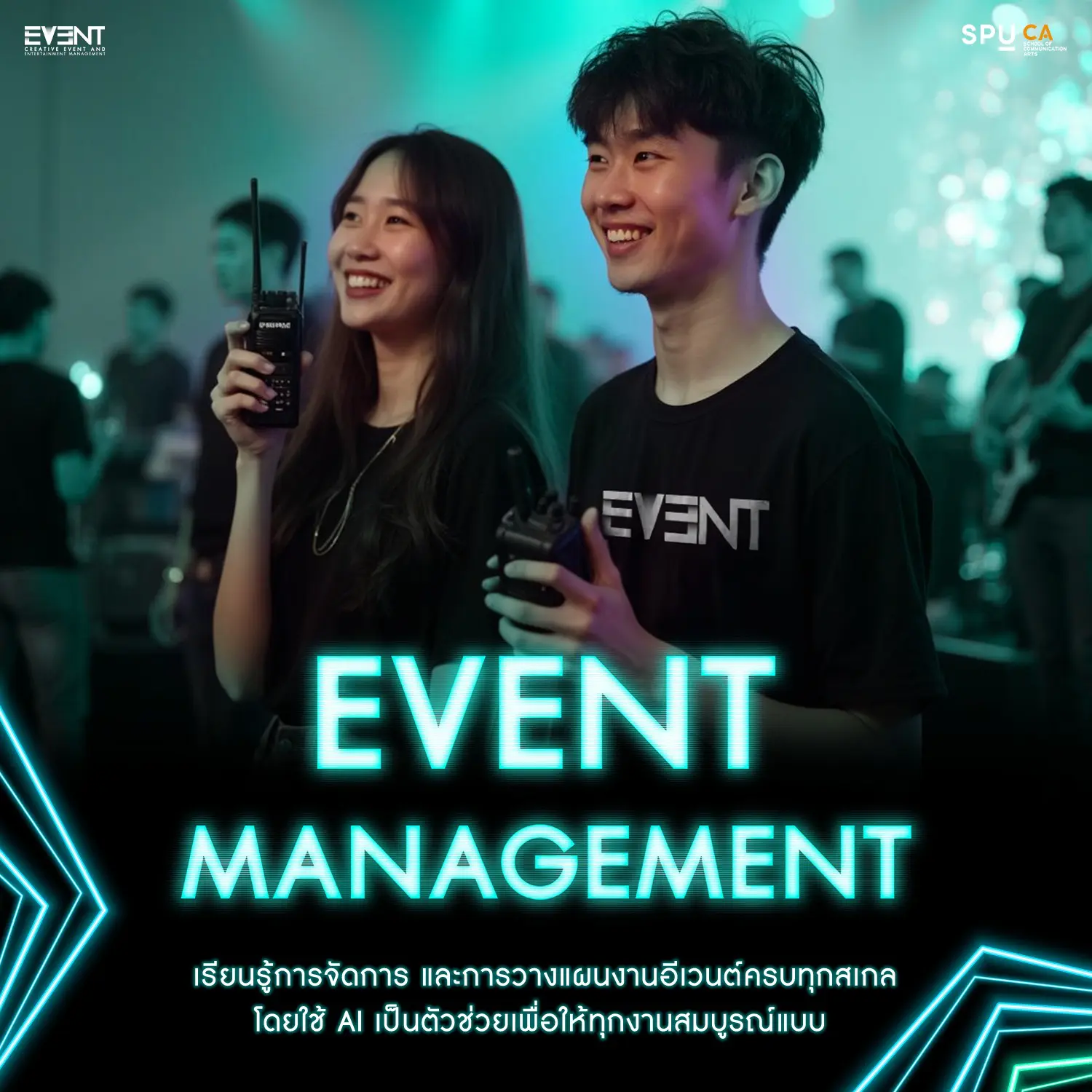 ก้าวสู่การจัดอีเวนต์ระดับมืออาชีพ ร่วมสร้างสรรค์อีเวนต์ให้กับองค์กรชั้นนำระดับประเทศ! พร้อมทำงานจริงในวงการ ตอบโจทย์ทุกสายงานอีเวนต์