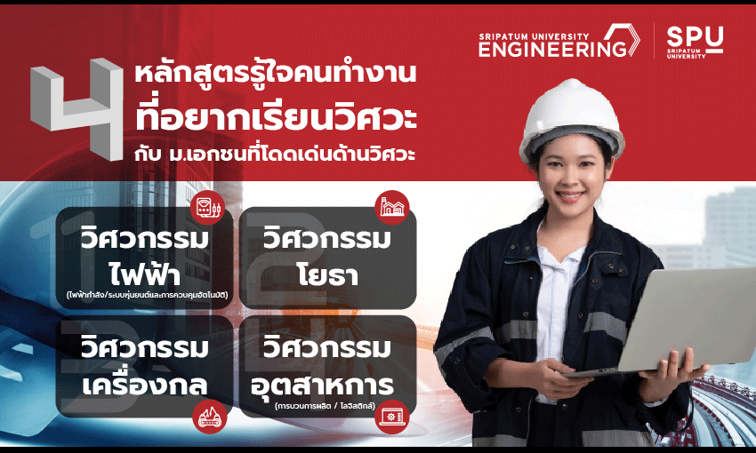ที่นี่ เราเน้นการเรียนการสอนที่เข้มข้นและจริงจังสุดๆ และมีอาจารย์คอยดูแลอย่างใกล้ชิด ภายใต้สิ่งแวดล้อม วัสดุอุปกรณ์ และห้องปฏิบัติการอันทันสมัย พร้อมโอกาสในการเข้าร่วมกิจกรรมการฝึกอบรมพัฒนาทักษะความรู้ ที่ทันต่อสถานการณ์ปัจจุบัน เช่น การอบรมโปรแกรมคอมพิวเตอร์ทั้งในงานวิศวกรรมโยธาและในงานจัดการอื่นๆ การอบรมเสริมความรู้ภาษาอังกฤษ การจัดกิจกรรมภาคสนามให้ทดลองทำจริง เพื่อให้เกิดประสบการณ์การแก้ปัญหาอย่างสมบูรณ์ที่สุด นอกจากนั้นแล้วที่มหาวิทยาลัยศรีปทุม ยังเน้นการพัฒนาวิชาชีพอย่างต่อเนื่องแม้กระทั่งจบการศึกษาไปแล้ว ก็ยังมีการติดต่อสื่อสารและแลกเปลี่ยนความรู้ในแวดวงการทำงานร่วมกัน ที่สำคัญหลักสูตรของที่นี่ได้รับการรับรองจากสภาวิศวกร เมื่อจบแล้วจะสามารถยื่นขอใบอนุญาตประกอบวิชาชีพวิศวกรรมควบคุม (กว.) ได้ด้วย